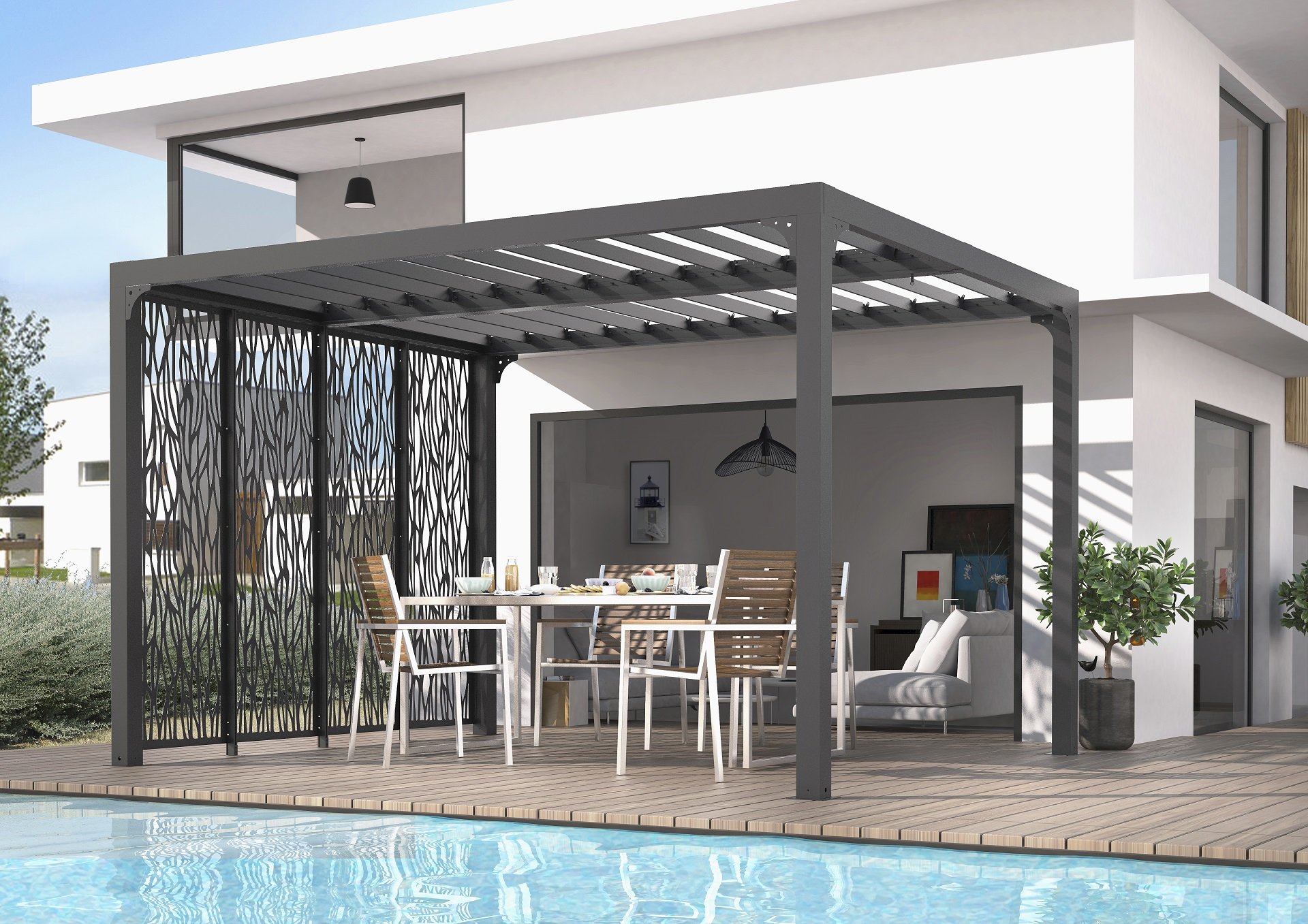 - Panneaux moucharabieh en acier époxy pour une rigidité parfaite et une parfaite décoration de votre terrasse