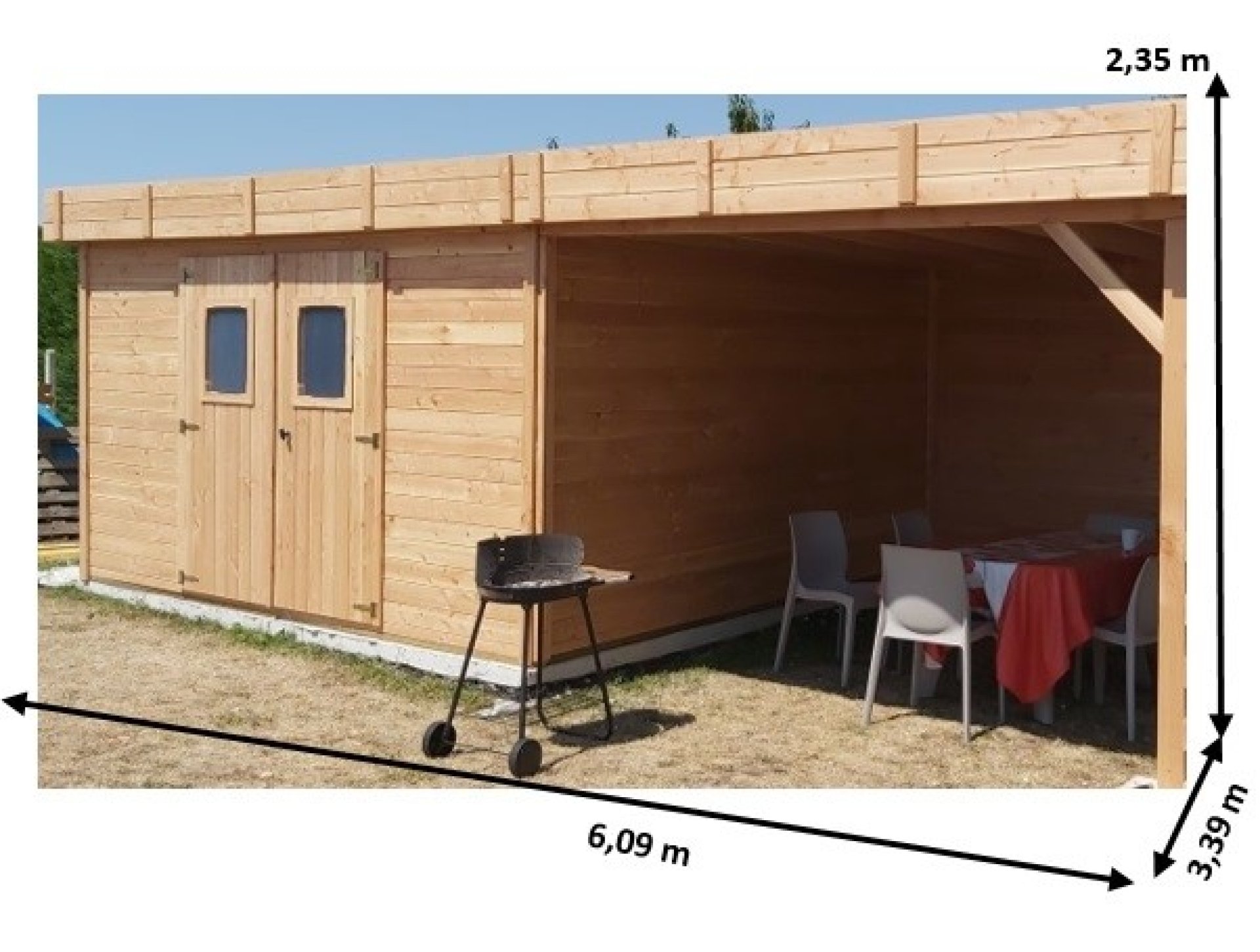 - Pratique avec sa partie « terrasse » couverte et bardée sur la paroi du fond