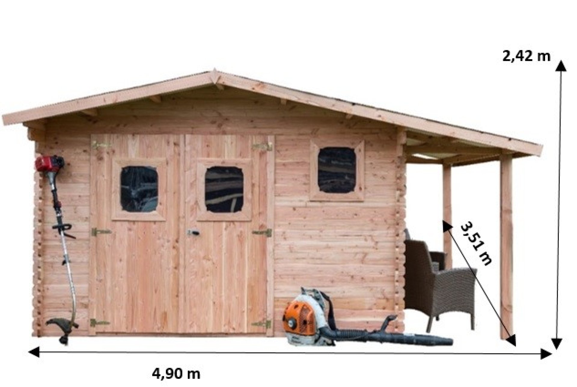 Abri Dommar, Douglas Madriers 28mm, 4.90 x 3.50m, 17.20m²