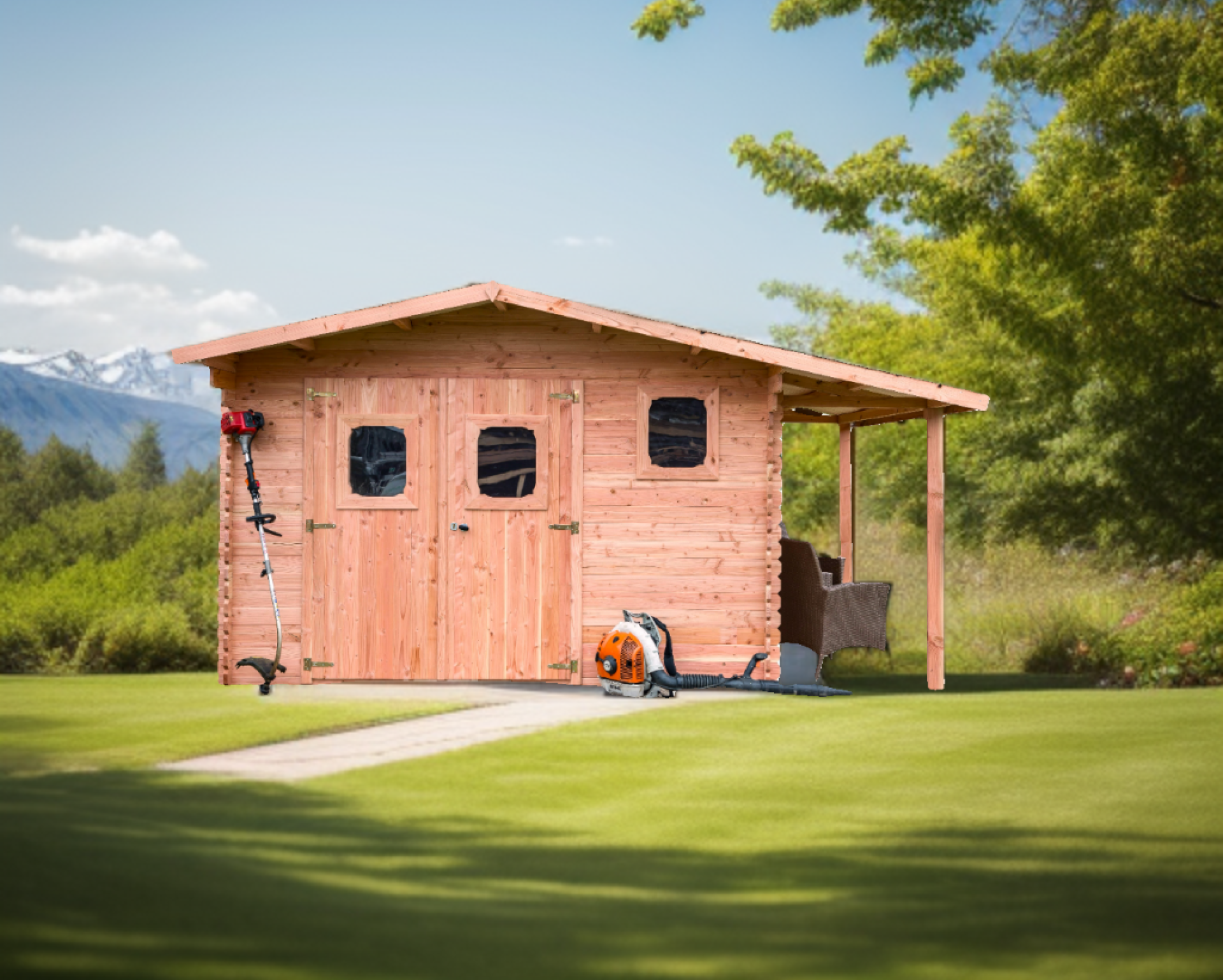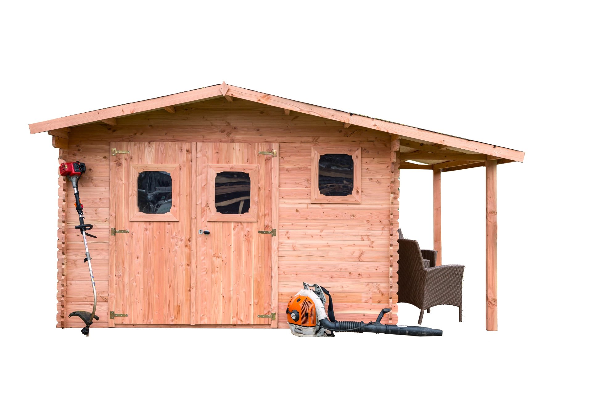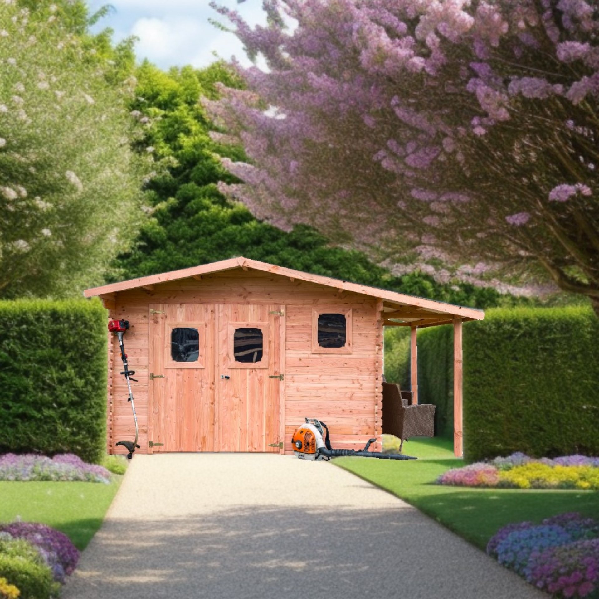 - Abri en bois naturellement durable et résistant, ne nécessitant