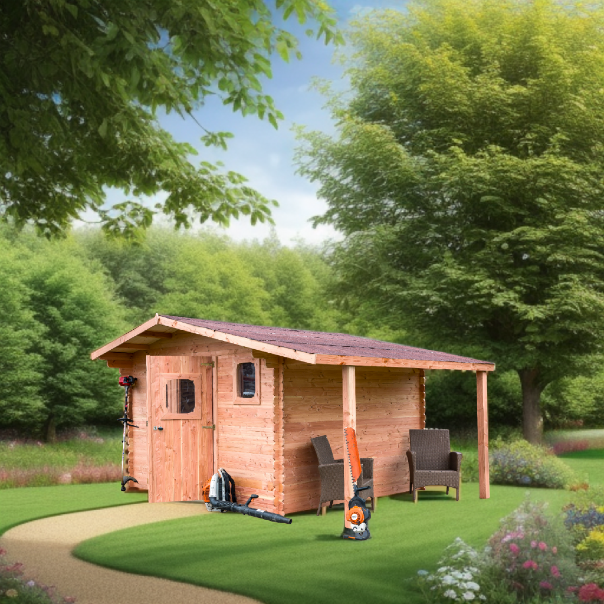 - Abri en bois naturellement durable et résistant, ne nécessitant