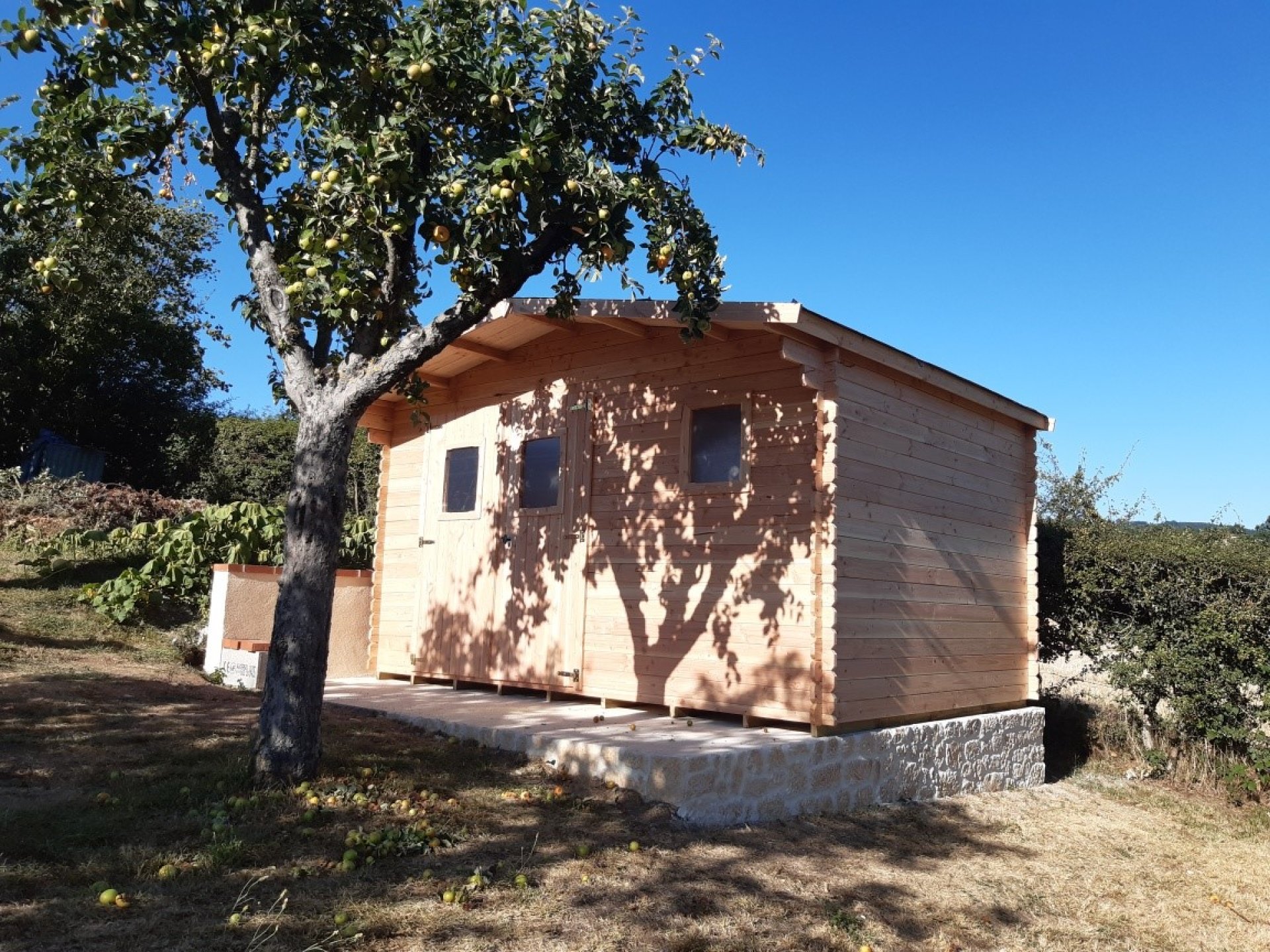 - Abri en bois naturellement durable et résistant, ne nécessitant