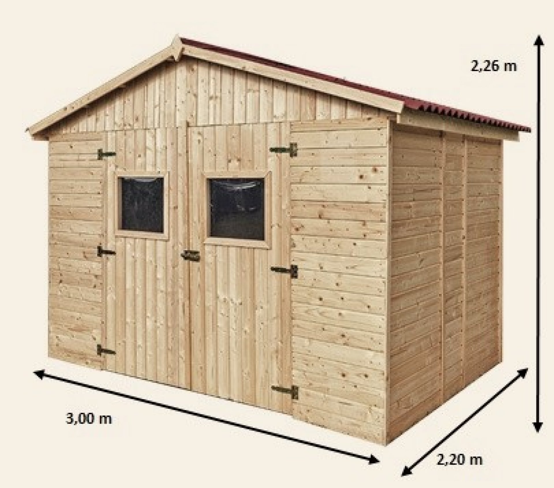 Abri Eden, Epicéa panneaux 16mm, 3.00 x 2.20m, 6.60m²