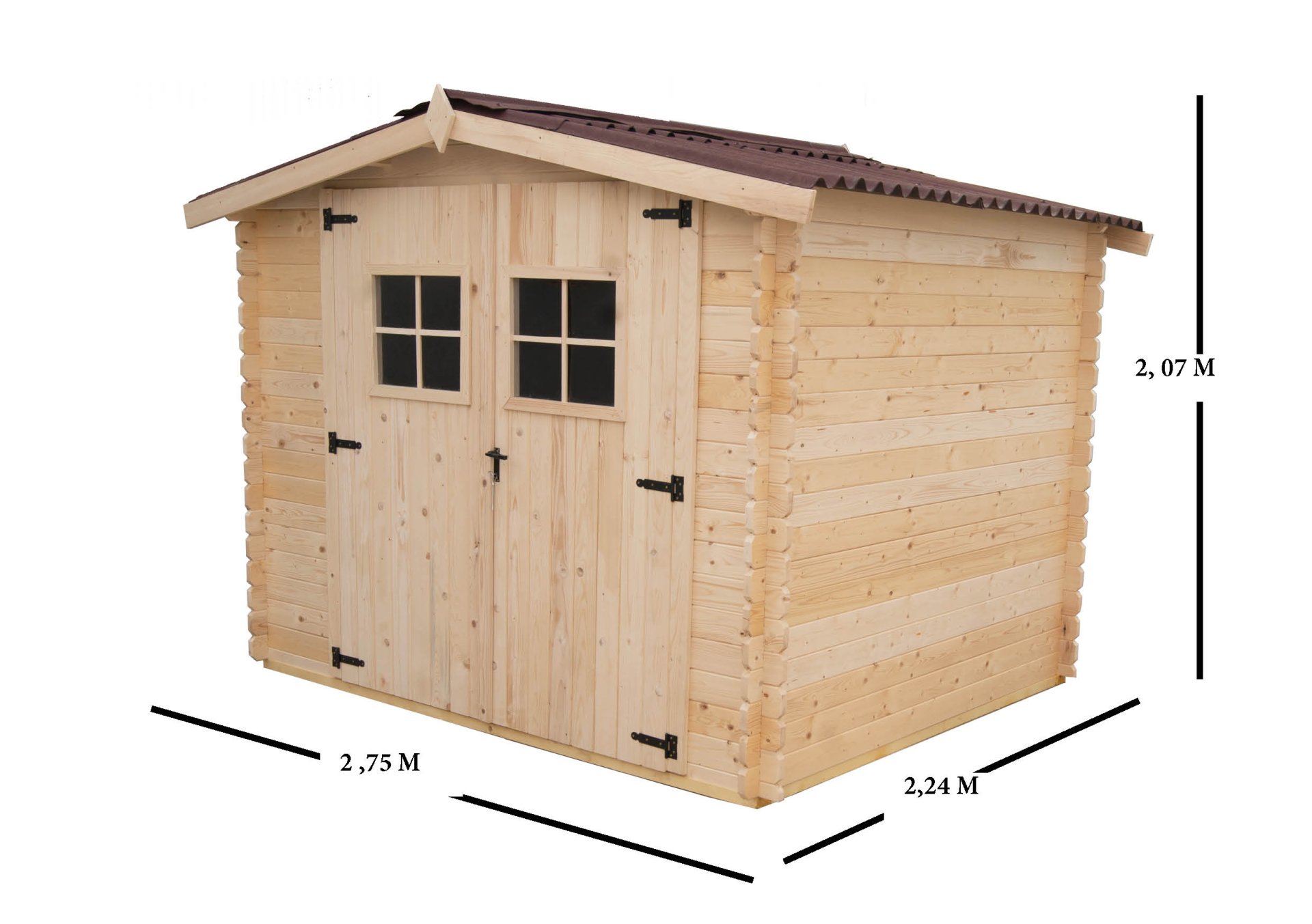 Abri Vaduz, Epicéa madriers 28mm, 2.70 x 2.20, 6.20m²