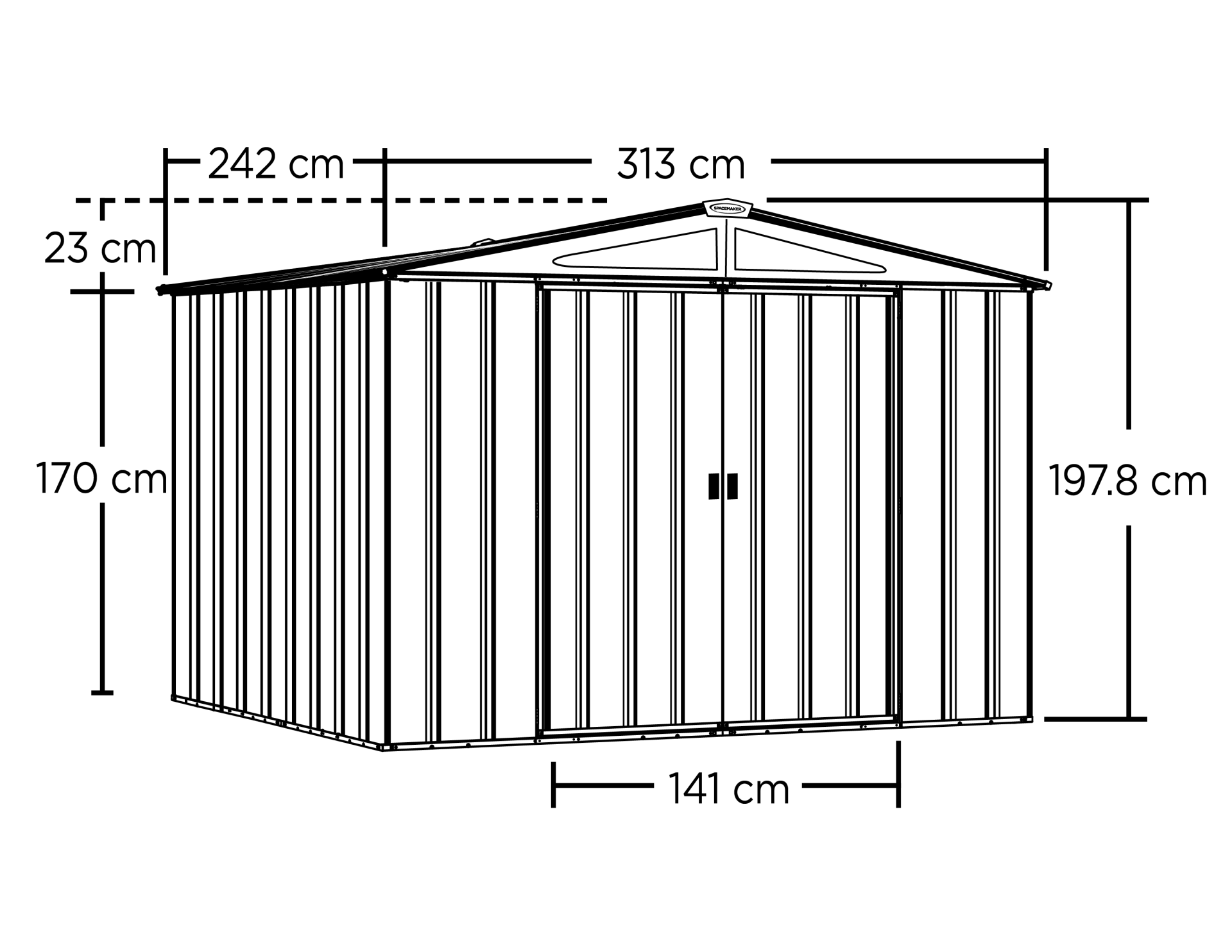 Abri Métal, grand volume, 3.10 x 2.40, 7.40m²