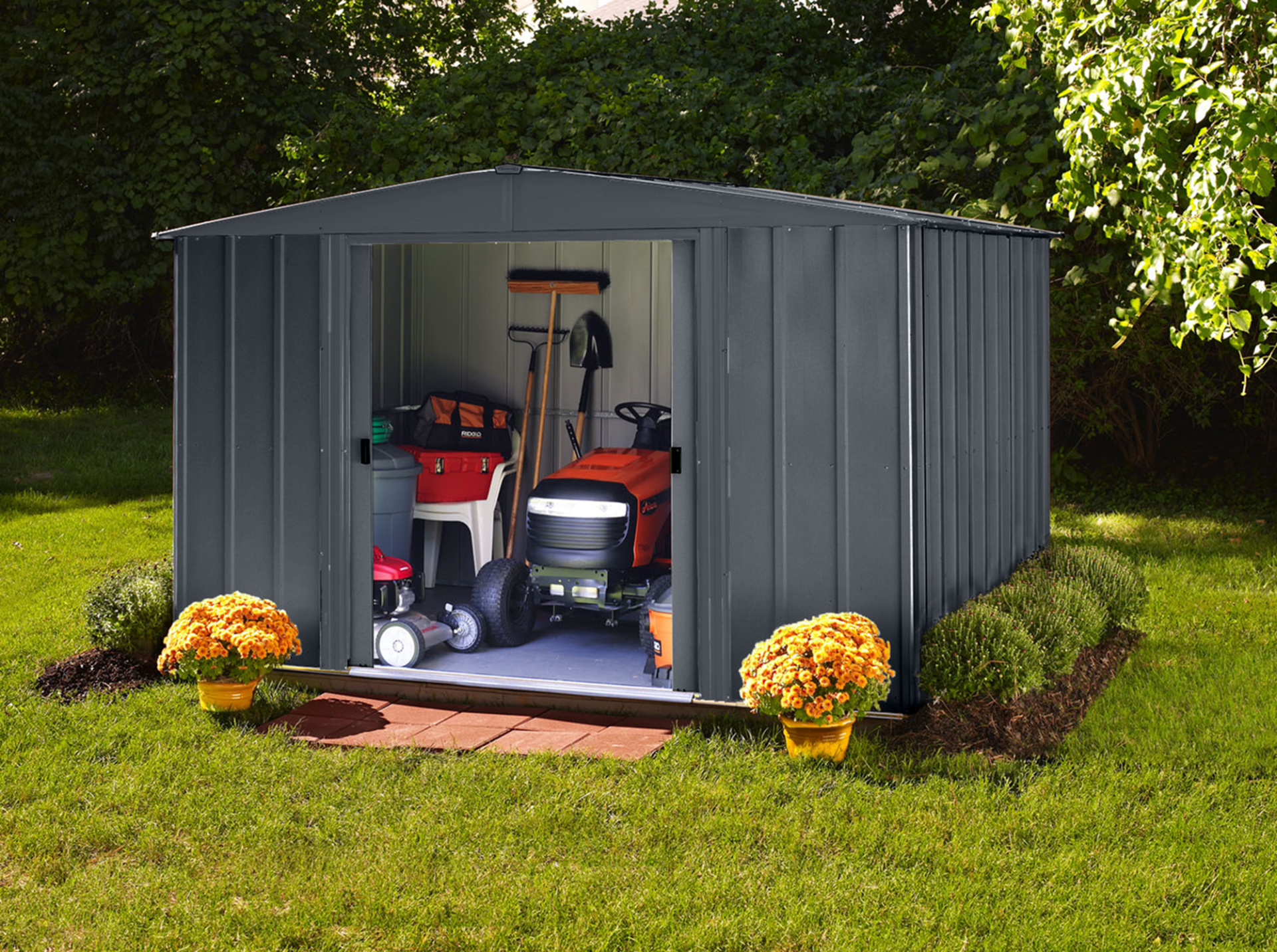 robuste, esthétique, disposant d'un large volume de rangement de 12,6 m3. L'abri AM3124GA est garanti 12 ans contre la