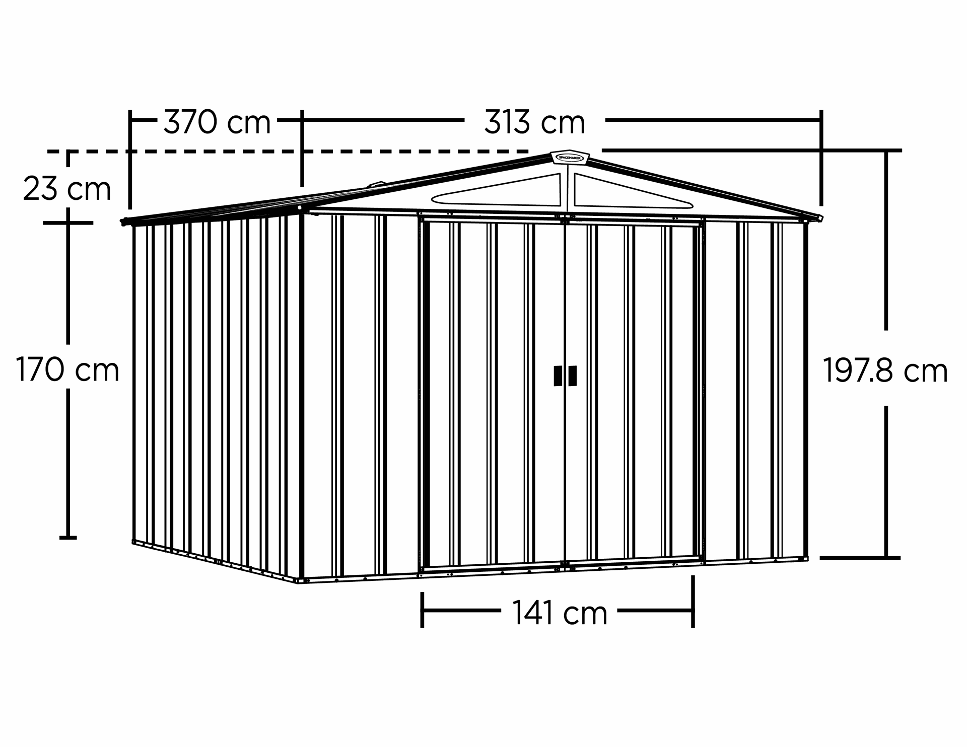 largeur 3,131 x profondeur 3,702 x hauteur faîtage 2,086 m