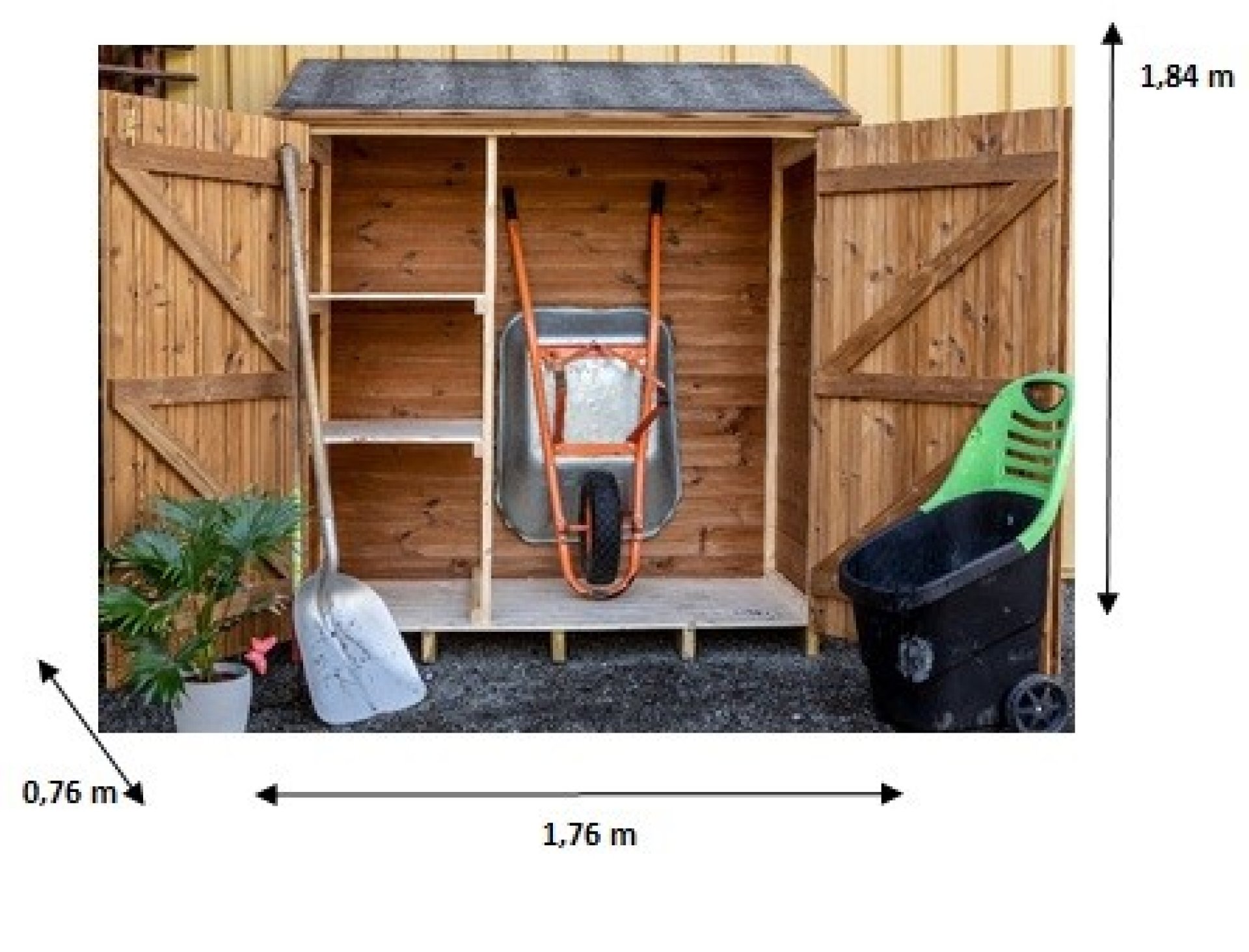 Abri Theora Mural, THT panneaux 19mm, 1.80 x 0.80m, 1.35m²