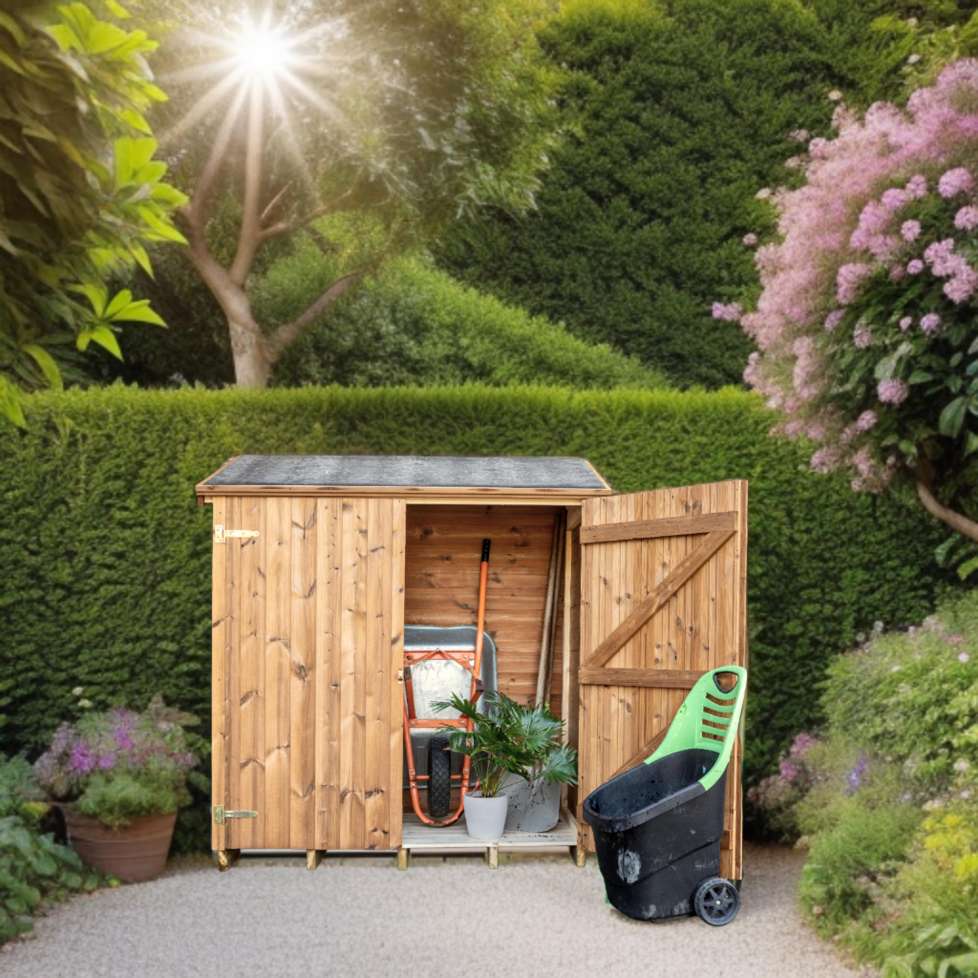 L'Abri Mural multi-usages en bois thermochauffé est un produit conçu pour offrir une grande résistance et durabilité. Le bois utilisé dans sa fabrication a été soumis à un traitement 100% naturel à 215°C, ce qui garantit une stabilité dimensionnelle des pièces de bois et une respect de l'environnement. Il est très facile à entretenir et vous offre la possibilité de stocker vos outils de jardin, vos équipements de sport, vos vélos, entre autres. Il est livré d’origine avec son plancher et 2 étagères, ce qui vous permet d’optimiser l’espace de rangement à l’intérieur. La construction est très facile à monter grâce au système en panneaux et au faîtage préassemblés.