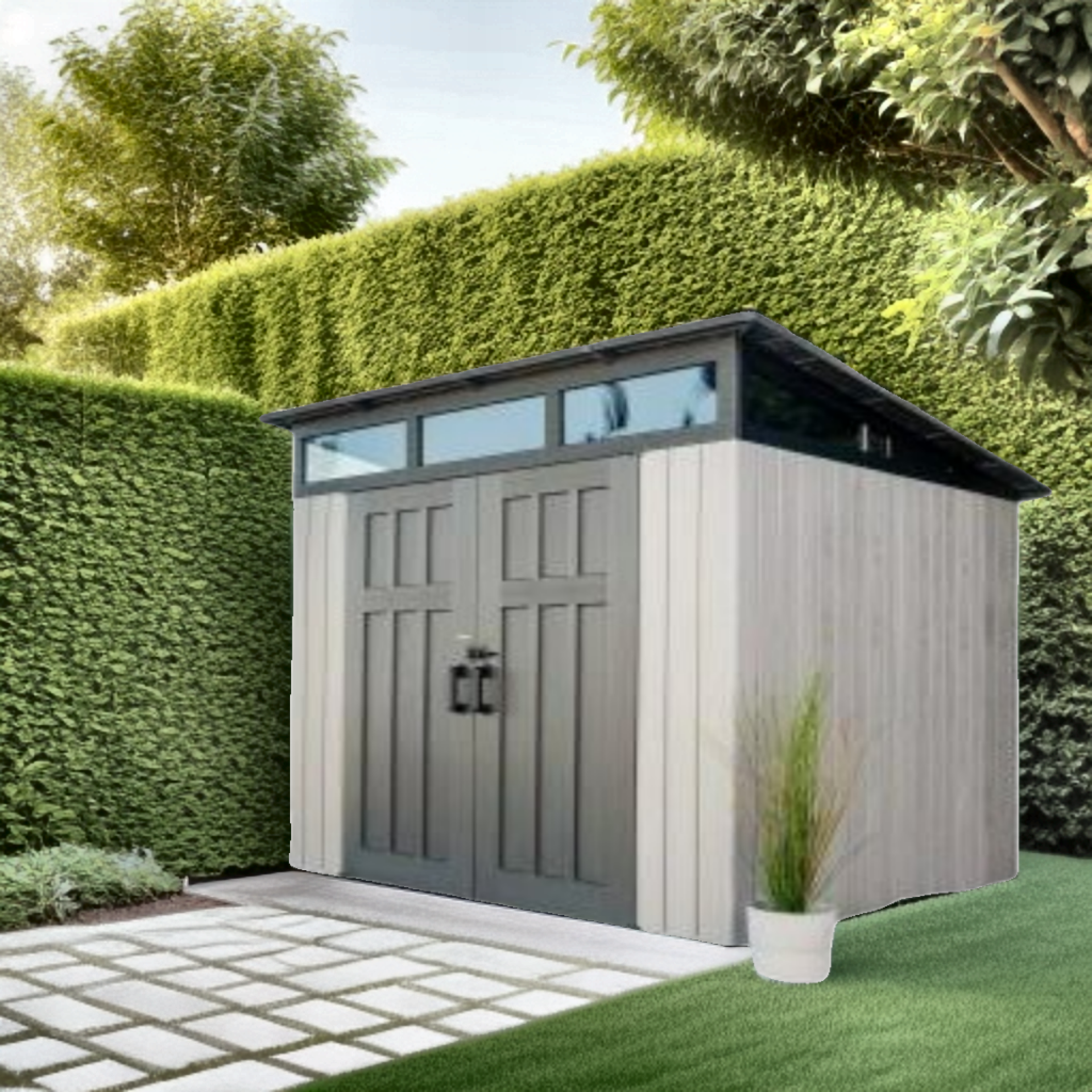 vous offre plus d'espace pour ranger les petits objets. Les portes sont verrouillables et s'ouvrent à 180 degrés. L'abri moderne LIFETIME