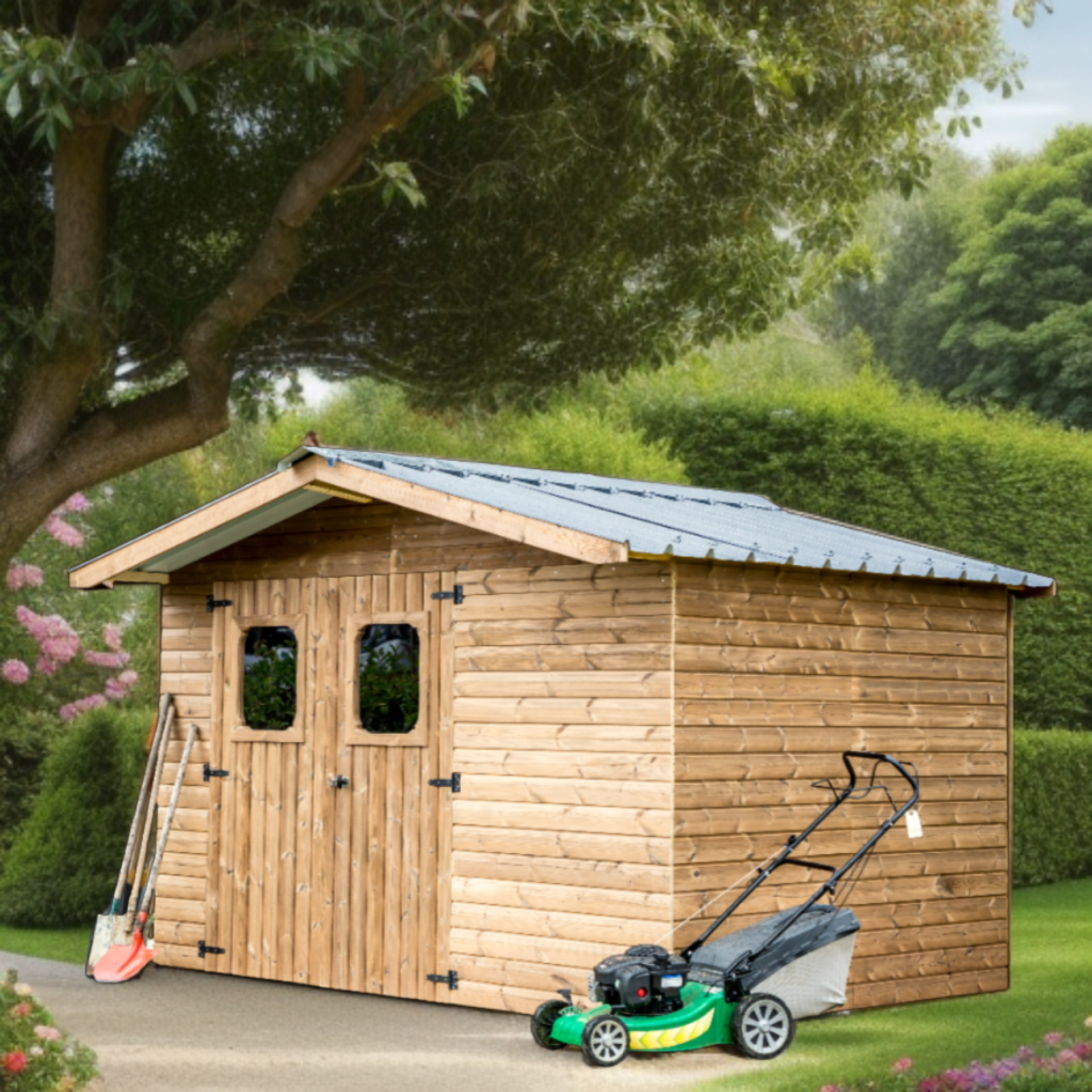 Cet abri est idéal pour tous les usages, pour stocker vos outils de jardin, votre mobilier extérieur, ou encore vos vélos. Il est un choix parfait pour les personnes qui cherchent un abri pratique, durable et respectueux de l'environnement avec une toiture en bac acier pour une grande longévité.