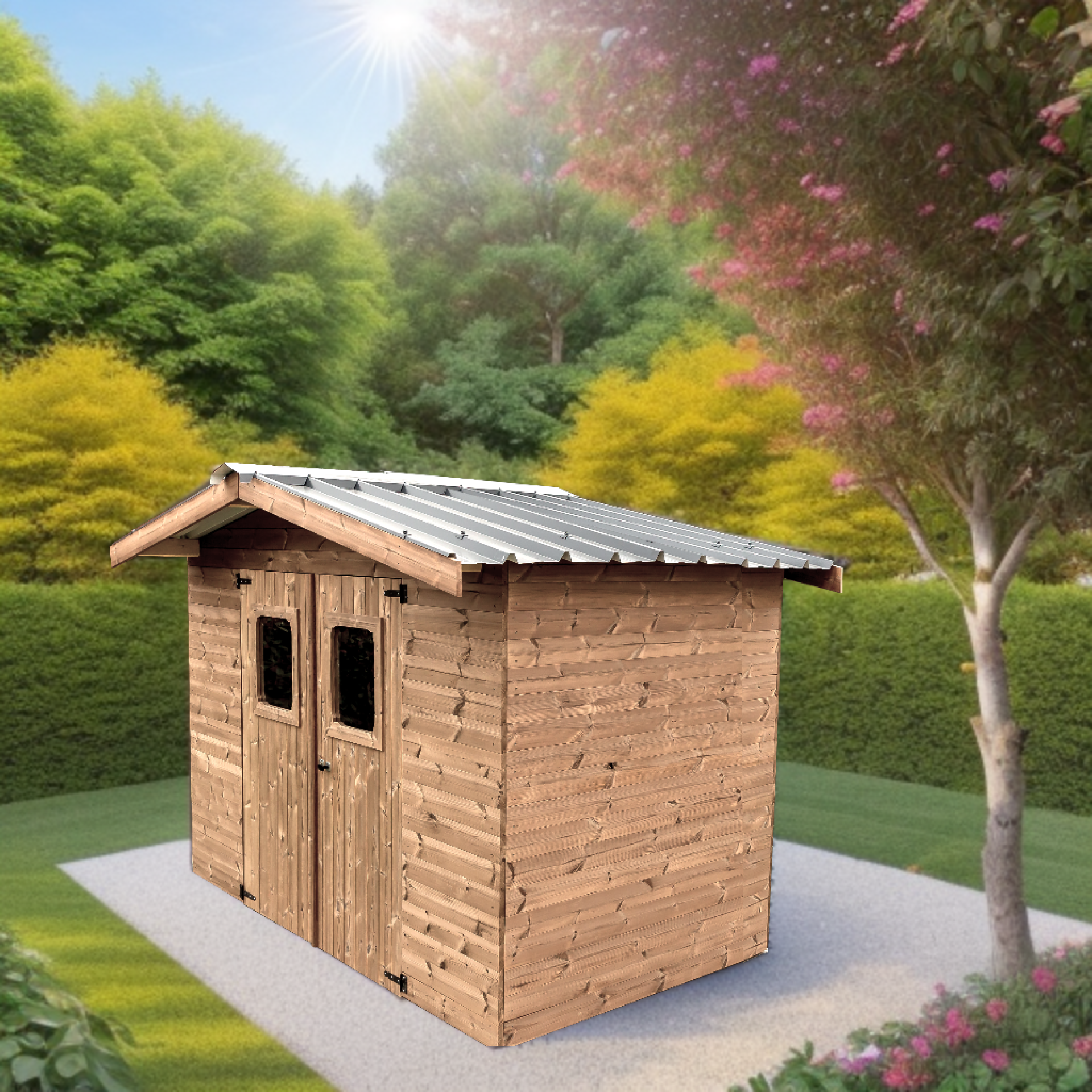 L'abri Therma double pente en bois thermochauffé est un choix idéal pour ceux qui cherchent un abri plus résistant et durable. Avec son procédé de traitement 100% naturel dans un four à 215°C, il offre une plus grande stabilité dimensionnelle des pièces de bois et respecte l'environnement. Il nécessite très peu d'entretien. Il est livré d'origine avec un kit de soubassement pour une installation rapide et facile. Le système de panneaux et le faîtage préassemblés rendent l'assemblage très facile. La couverture en bac acier ultra-résistante garantit une grande longévité et une résistance face aux intempéries. Ce produit est vendu sans plancher et avec des panneaux.