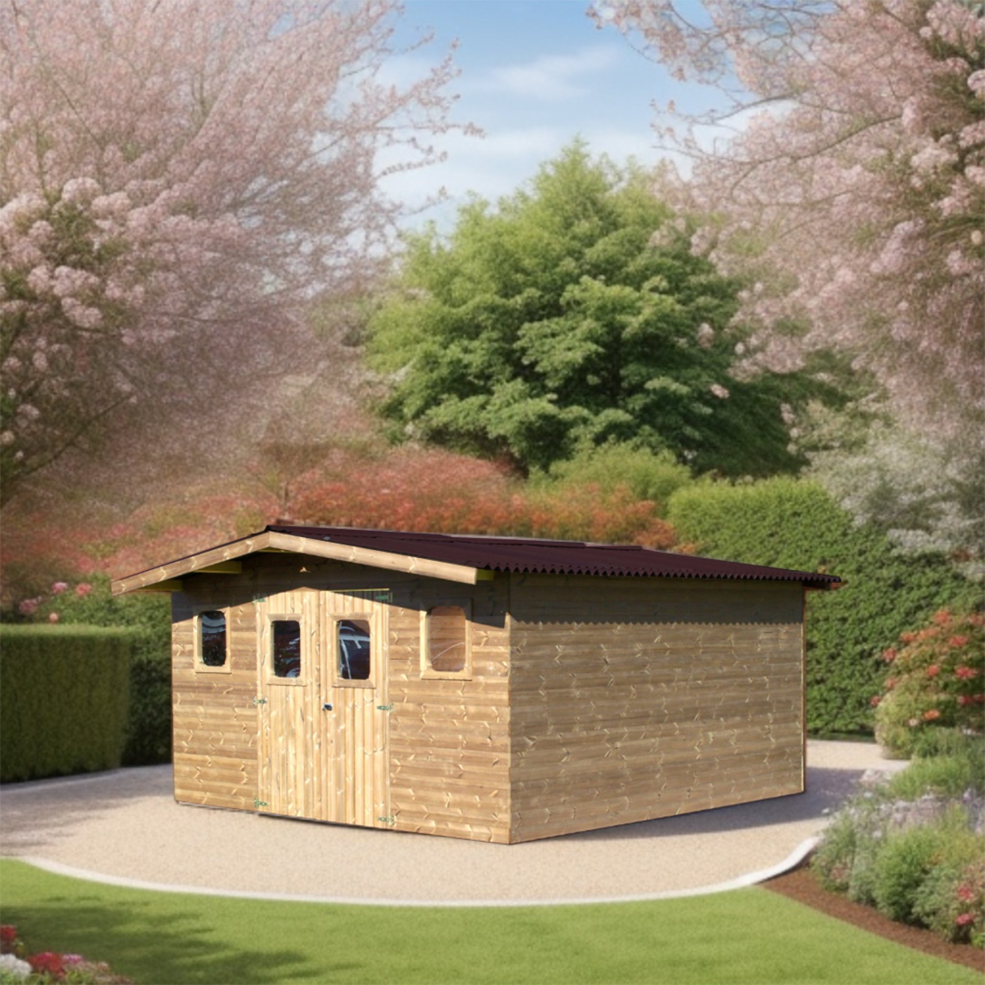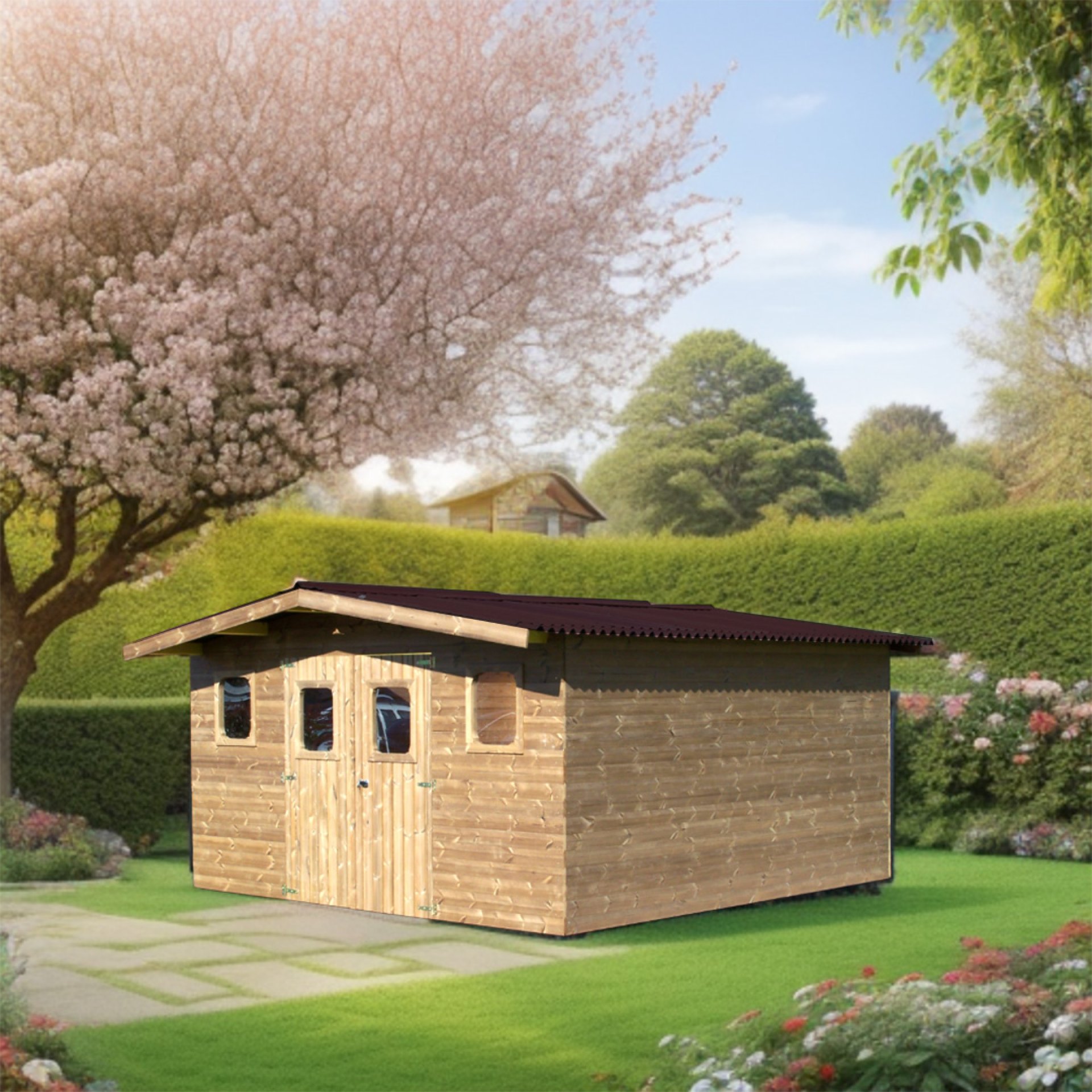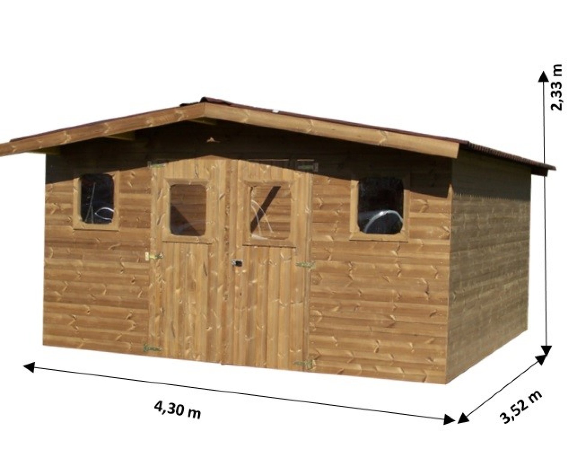 Abri Thermabri, Epicéa THT madriers 28mm, 4.30 x 3.50m, 15.10m²