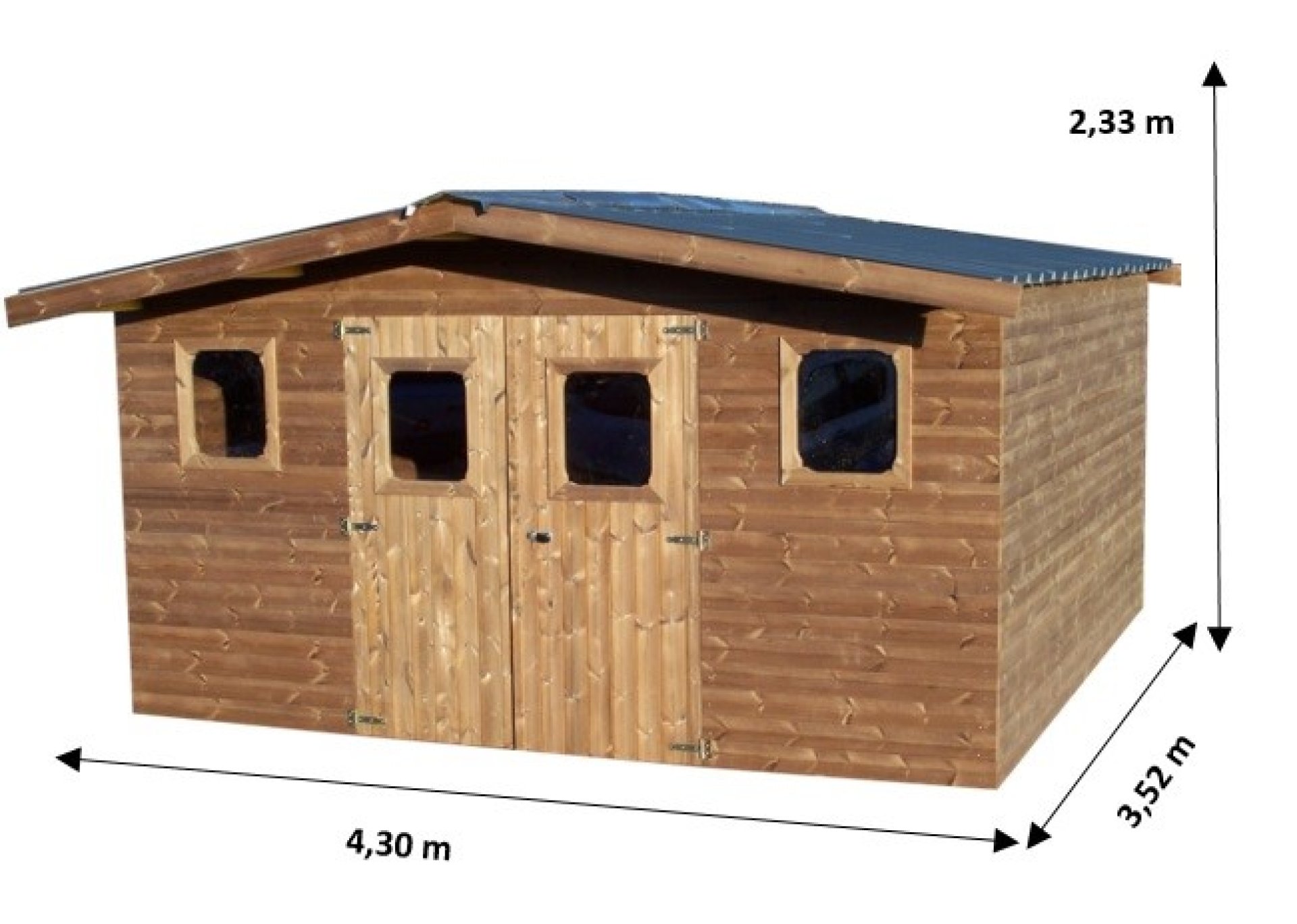 Abri Thermabri, THT madriers 28mm, 4.30 x 3.50m, 15.00m²