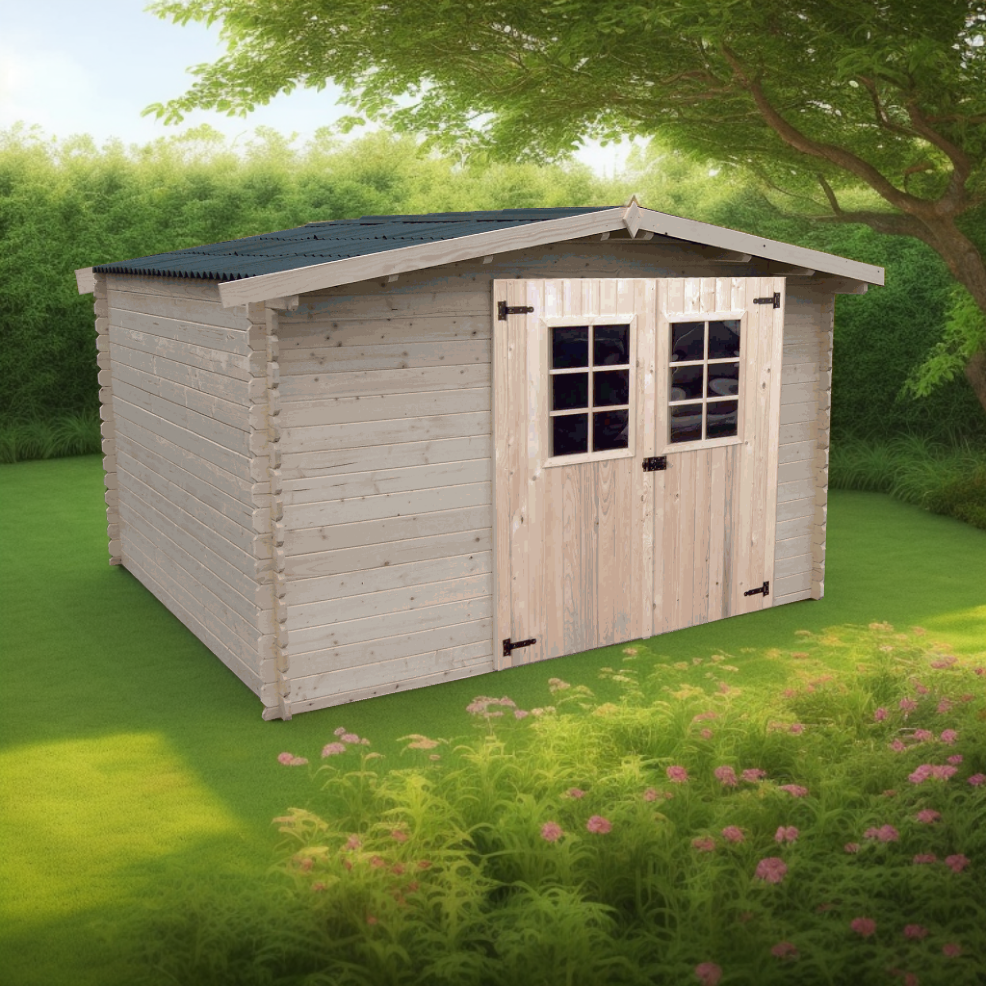 Abri Vaduz, Epicéa madriers 28 mm, 3.40 x 3.04m, 10.34 m²