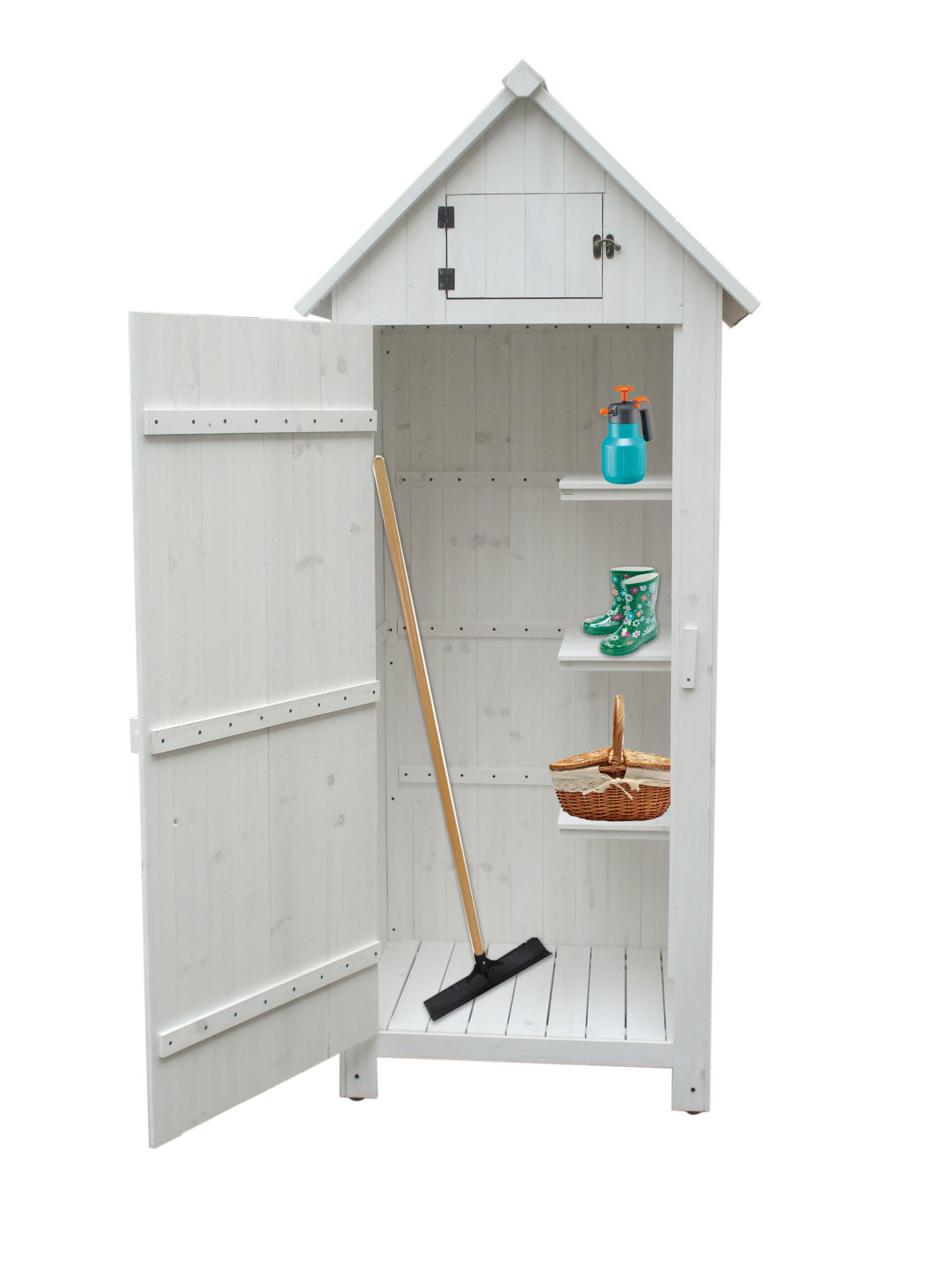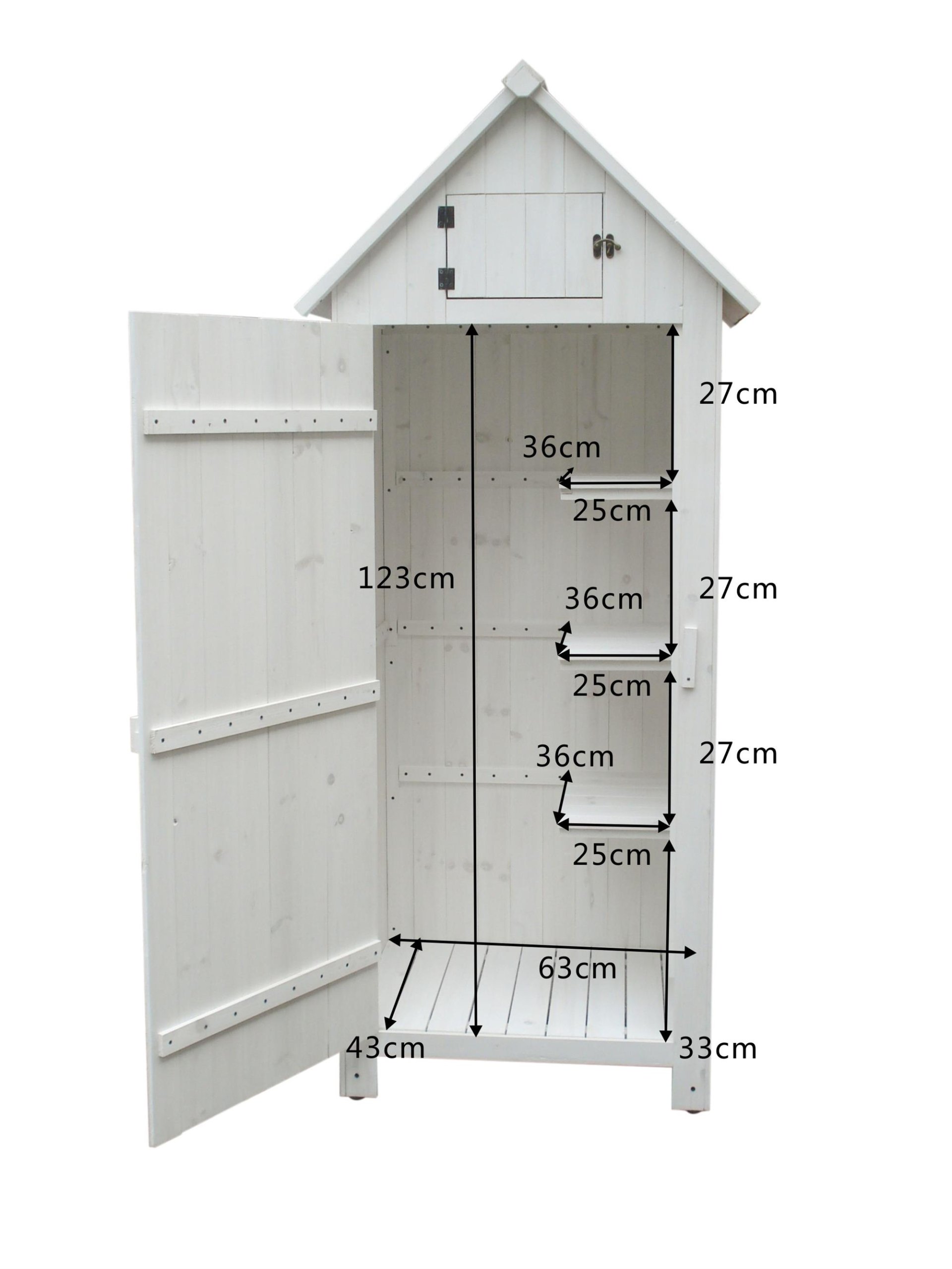 L'Armoire cabine de rangement blanche est la solution idéale pour ranger vos outils de jardin en toute sécurité. Avec sa grande capacité de stockage, cette cabane de jardin est équipée de tablettes de rangement pour les petits objets. La peinture blanche résistante à l'eau assure une longue durée de vie, tandis que le toit équipé d'une protection bitumée protège vos objets des intempéries. La finition haut de gamme en blanc lasuré s'intègre parfaitement dans tous les types de jardin. Le montage est simple et le produit est facile à entretenir. Ce toit bi-pente est couvert de papier bitumé pour une meilleure protection. Avec plusieurs utilisations et de rangement, cette armoire est labellisée FSC® et offre une garantie de 2 ans.