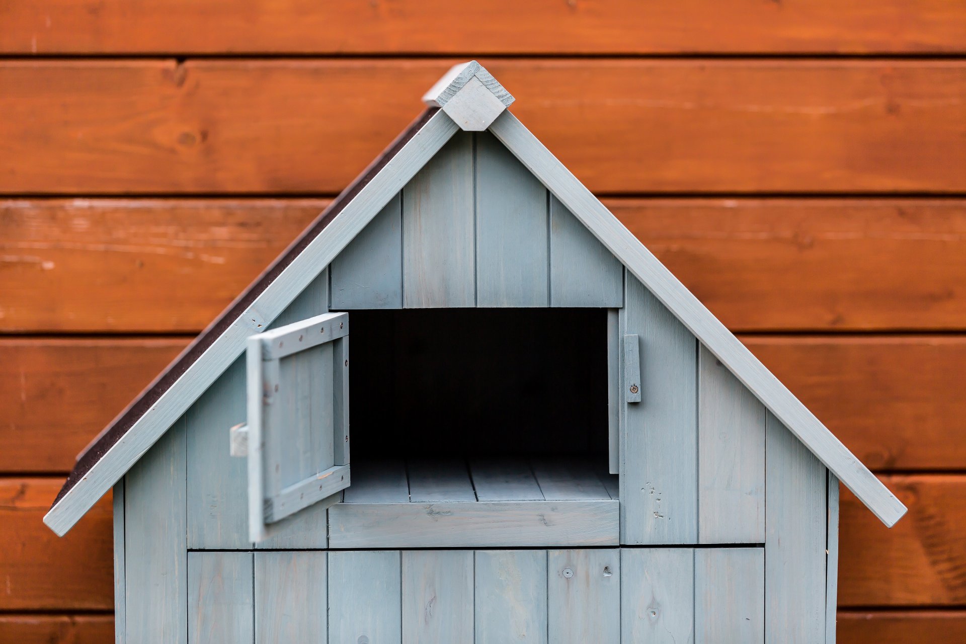 Armoire cabine de rangement équipée de 3 étagères, Bois lasurée finition bleu, 0.65 x 0.44 m, 0.28m²