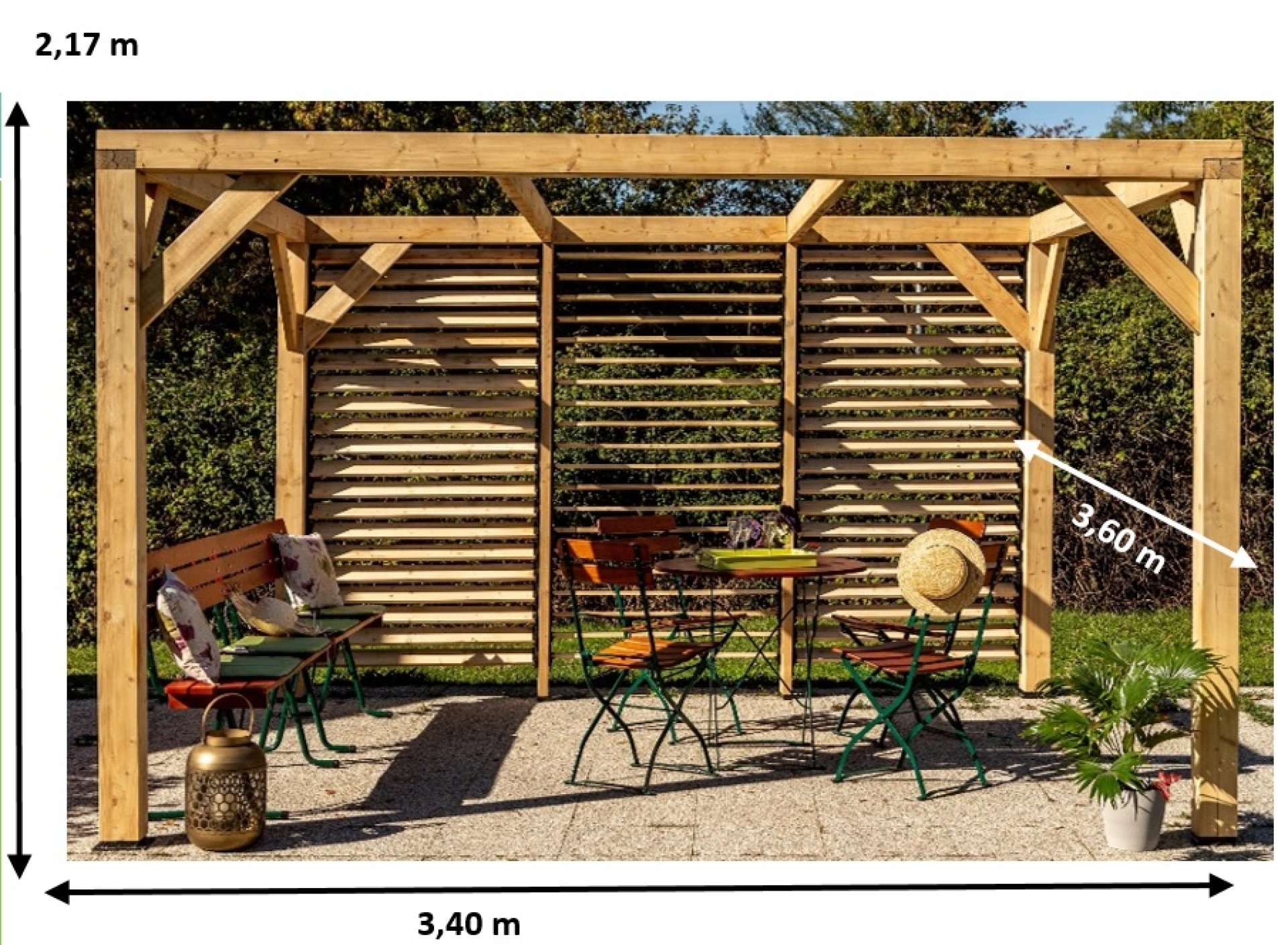 Pergola Veneto avec ventelles réglables / 1 Côté, Epicéa/Sapin traité, 3.60 x 3.40 m, 12.20m²
