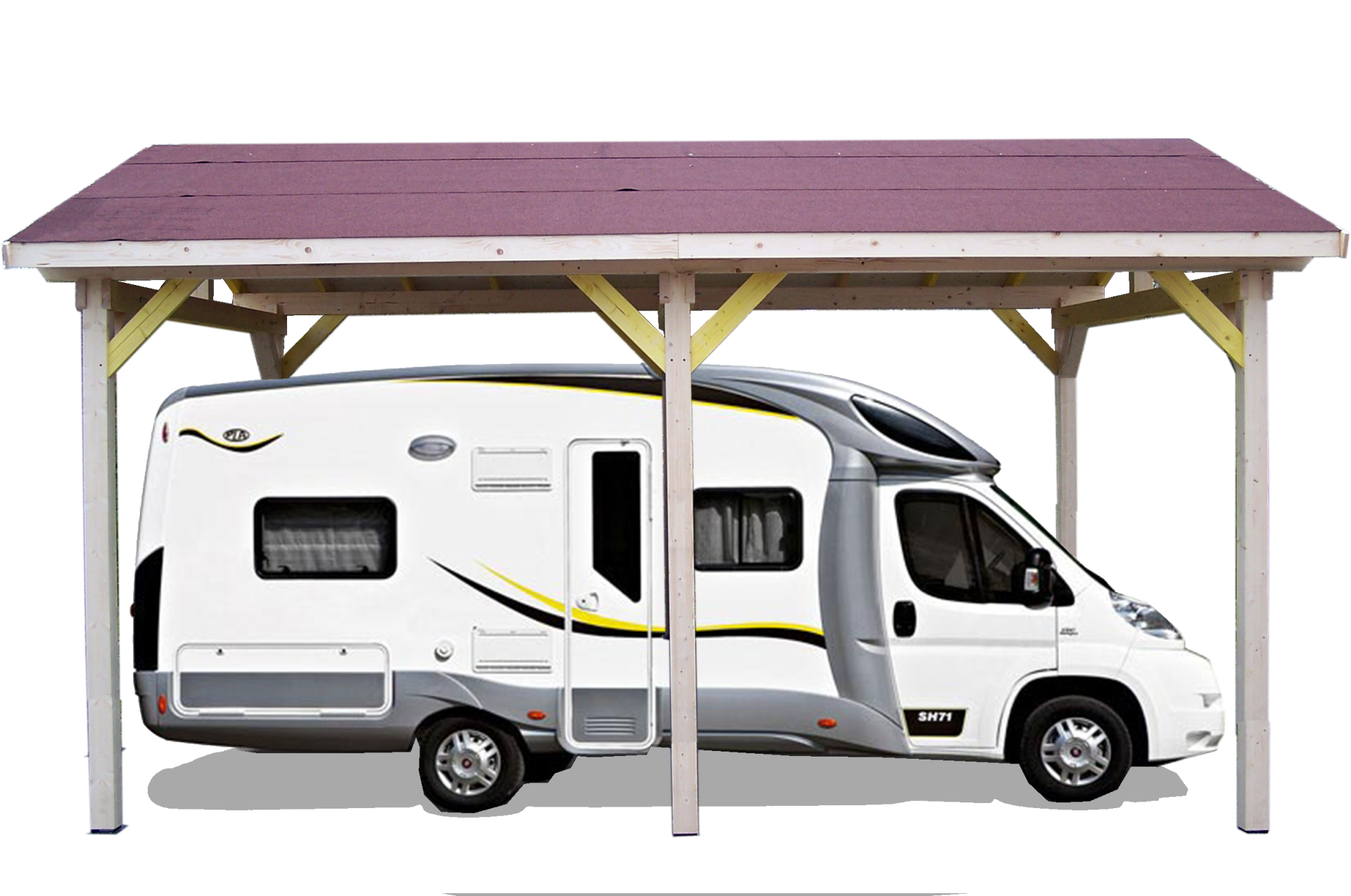 Le Carport double pente avec couverture bardeau bitumé en rouleau mesure 3,50 x 6,00 m. Il est conçu pour durer grâce à son assemblage par tenon et mortaise et à ses poteaux de très grosse section de 12x12 cm. Ce Carport est spécialement conçu pour les camping-cars. Il est fabriqué en France et certifié PEFC, garantissant la qualité de ses matériaux. Les poteaux sont livrés avec une platine métallique à fixer au sol dur pour une installation stable. Ce produit est garanti 2 ans et peut-être installé sur une dalle béton, des plots ou une terrasse en bois.