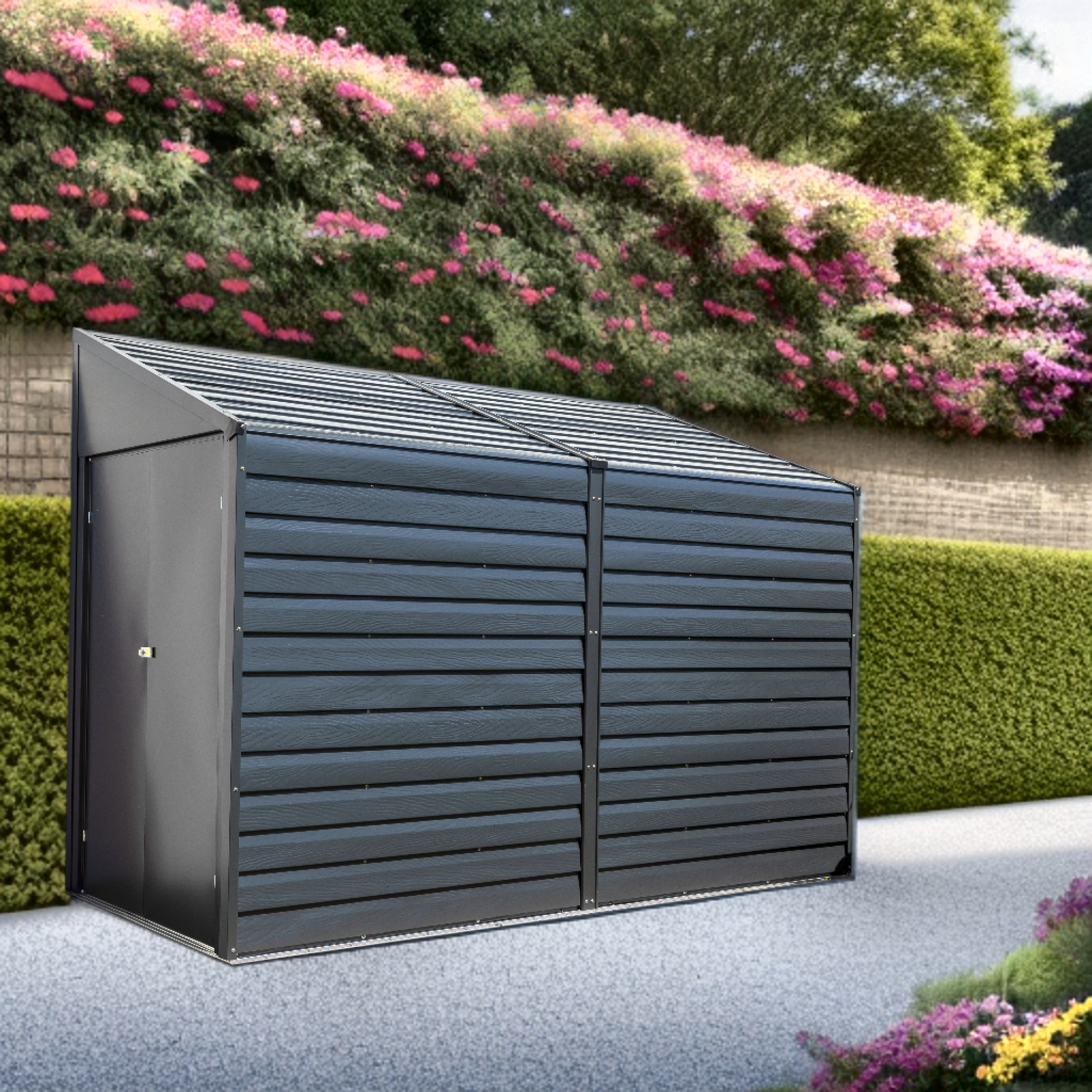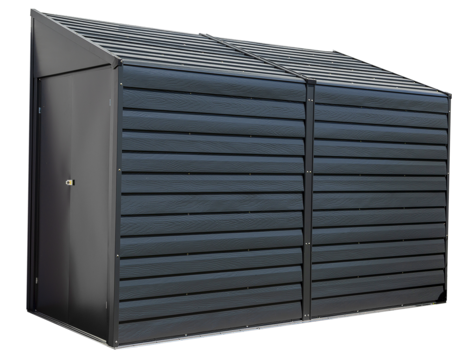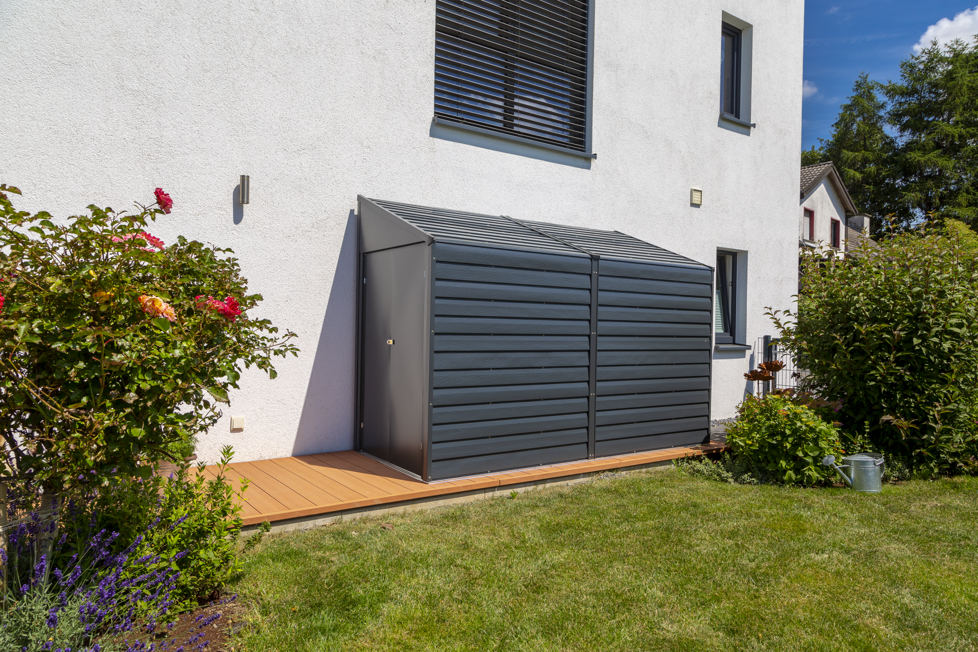 possibilité de créer un rangement sur le côté latéral d'une habitation. La porte à battant en acier maximise la capacité de