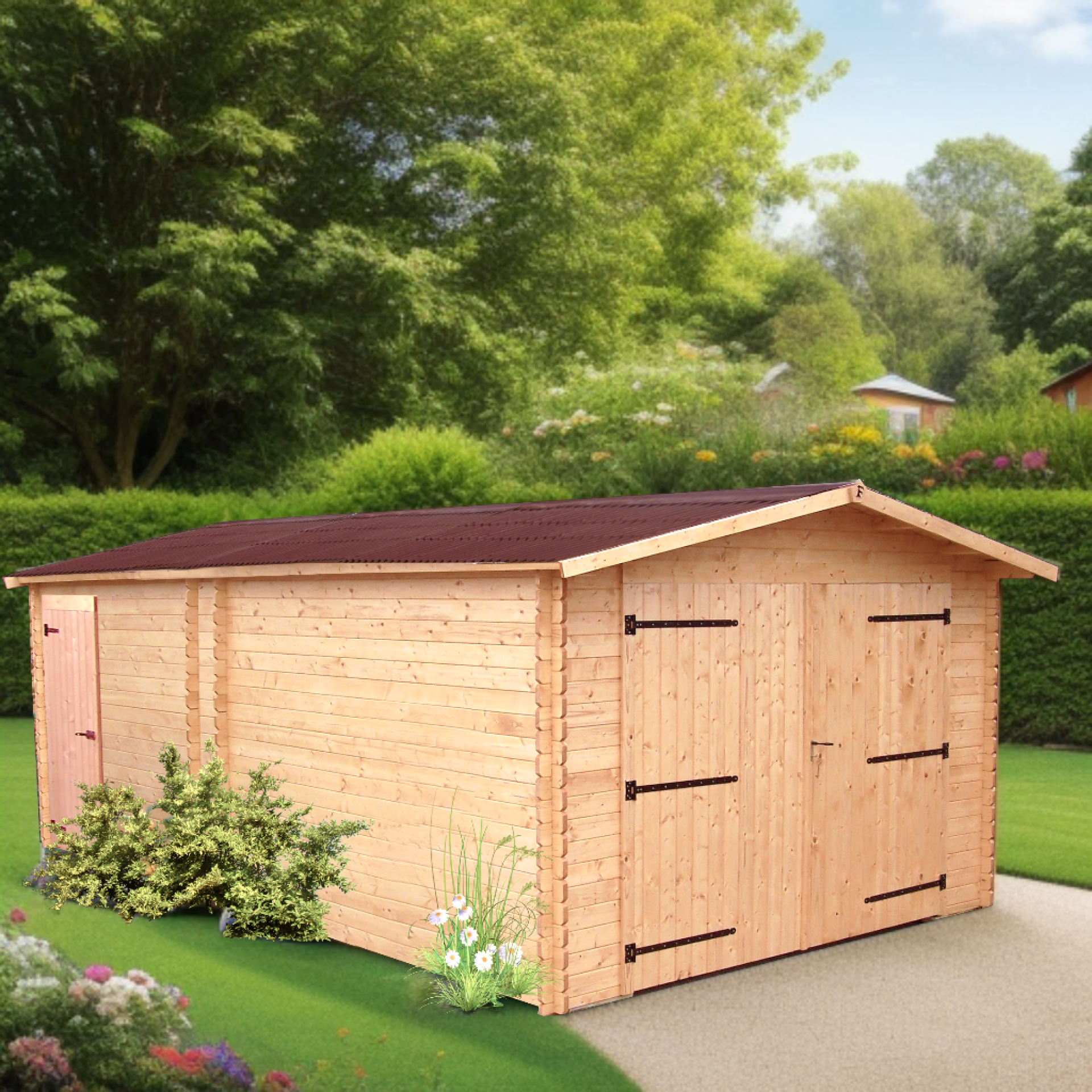 - Garage en bois naturellement durable et résistant, ne nécessitant