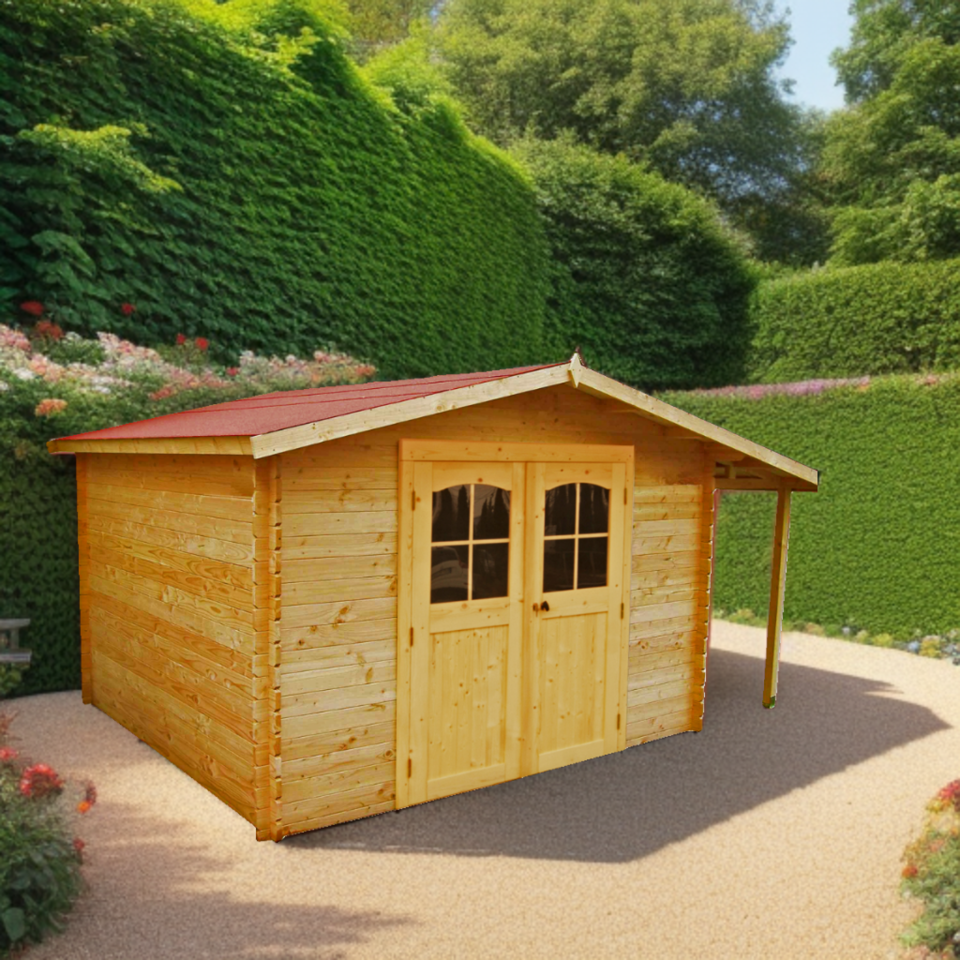 Abri Montigny, Epicéa Madriers 28mm, 3.10 x 4.30m, 12.00m²