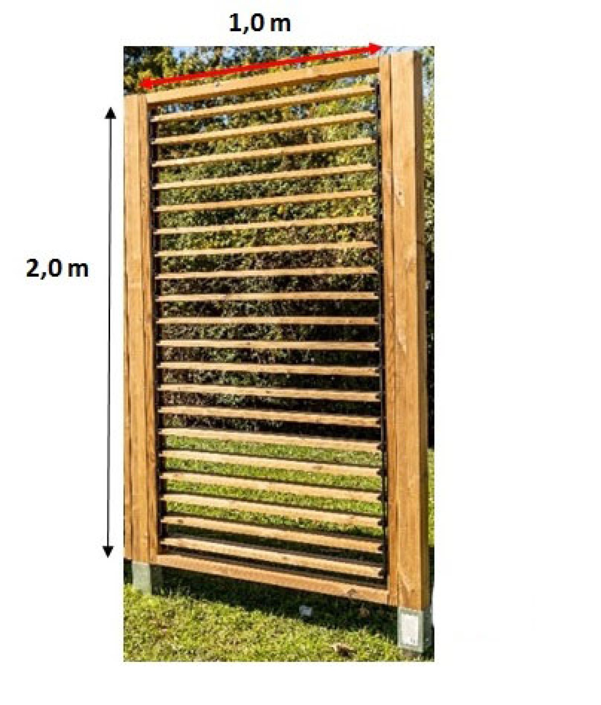 Le système du panneau clôture 1 m x 2 m avec cadre permet de réaliser des protections ou des séparations dans le jardin ou sur des terrasses pour le vent, le soleil et la vue du voisinage. La fermeture de celui-ci permet de se protéger du soleil en toute simplicité en reprenant le principe des lames orientables du store vénitien. Ce système est fabriqué en France et breveté. Les lames orientables sont en bois thermochauffé section 95 x 20 mm. Ceci confère au système une résistance au vent et une durabilité dans le temps incomparable avec les autres systèmes existants.