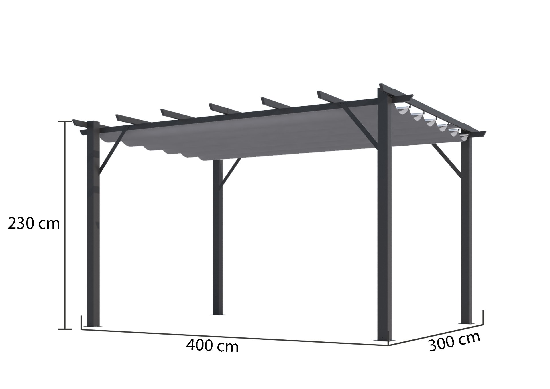 Pergola Bioclimatique, aluminium Gris anthracite Poteaux 10x10 cm, Toile couleur grise, 4.0 x 3.0 m, 12m²