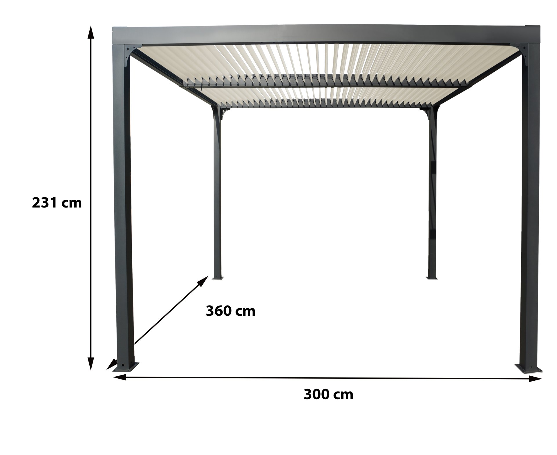 Pergola Bioclimatique avec ventelles écru, Aluminium gris anthracite, 3.60 x 3.00m, 10.80m²