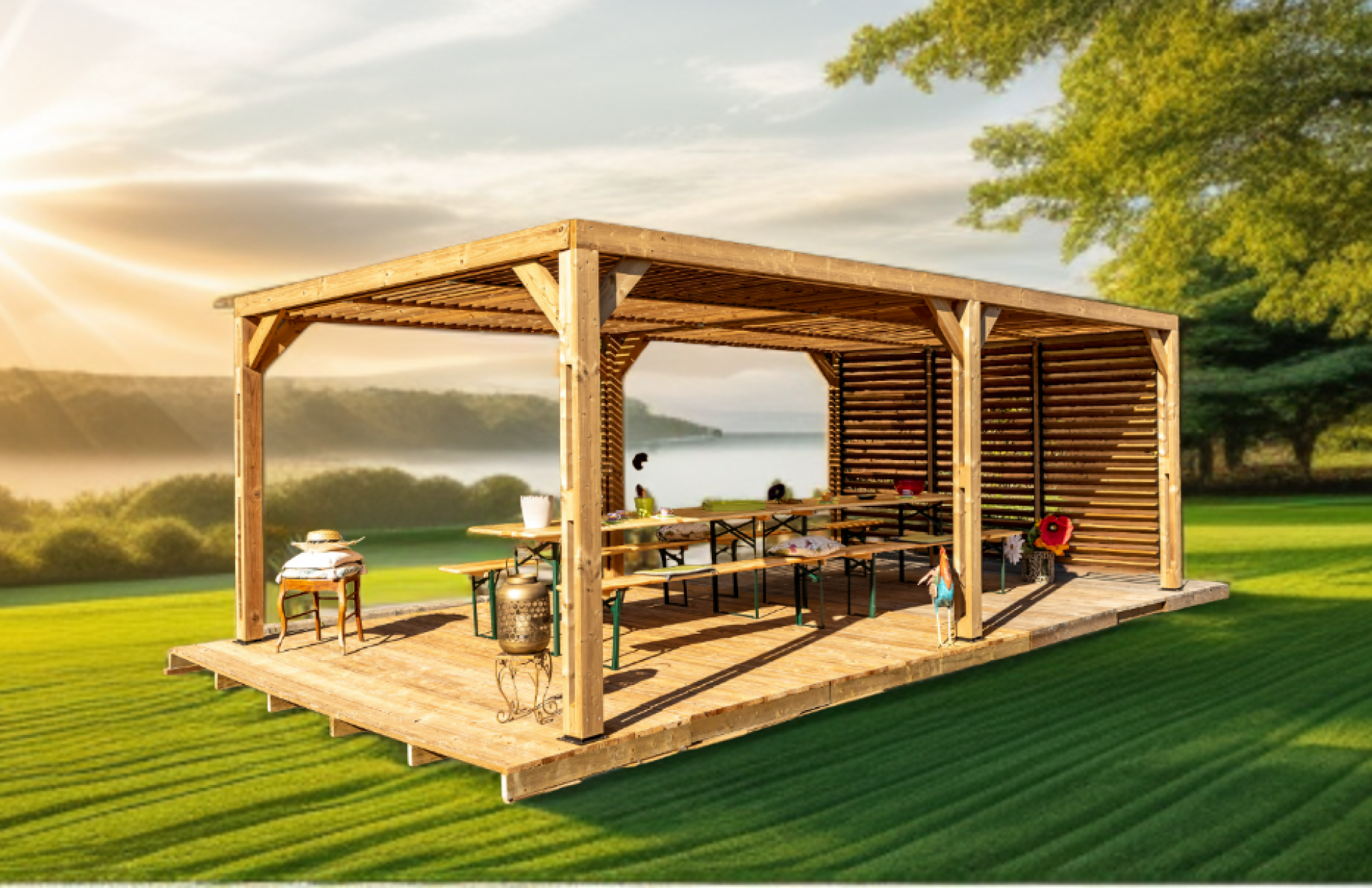 - Une plus grande résistance et durabilité du bois grâce au procédé de traitement à très haute température dans un four à 215°C. Ce traitement est une technologie naturelle qui permet une stabilité dimensionnelle des pièces de bois ; les insectes n'attaquent plus le bois et les pièces n'absorbent plus l'humidité ambiante. Le bois ne nécessite plus qu'une coloration à des fins esthétiques, mais pas de traitement répétitif tous les ans