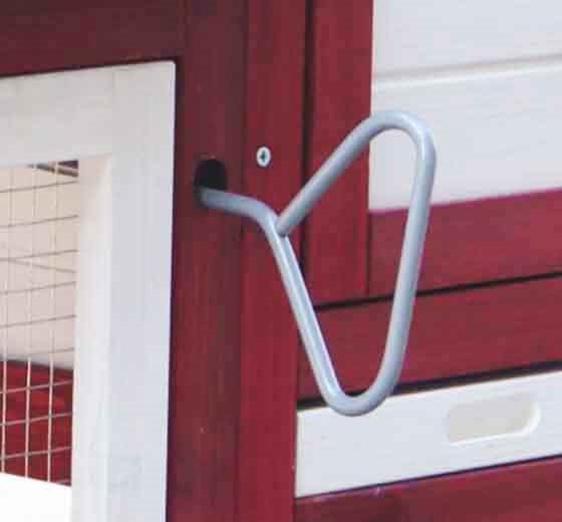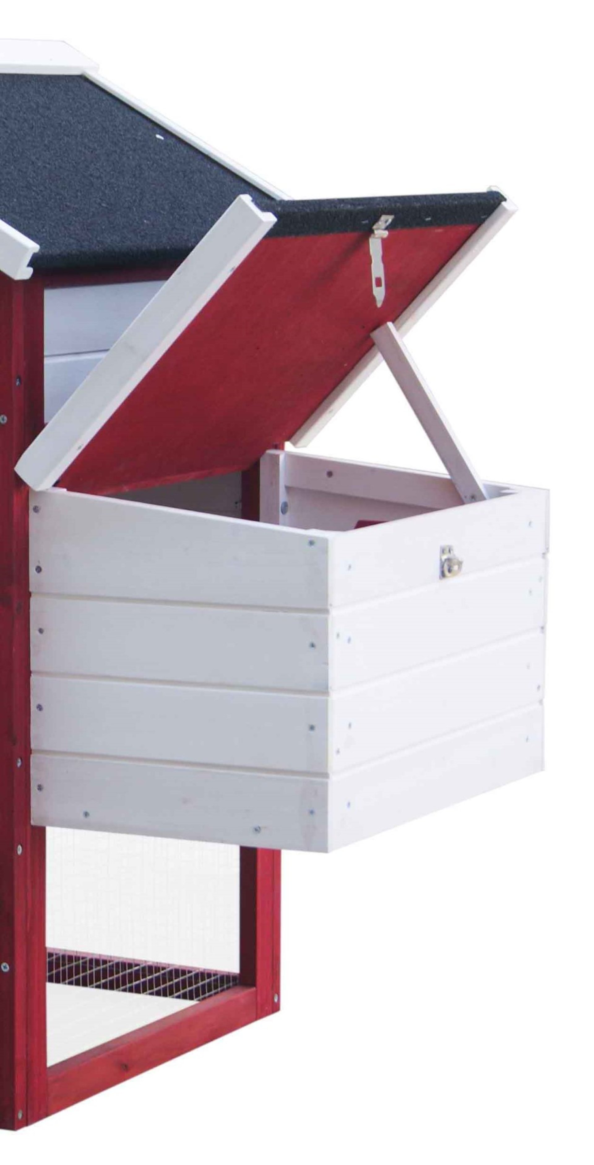 Le poulailler dispose d’un pondoir équipé de 2 compartiments qui sont accessibles de l’extérieur par une trappe pour récupérer