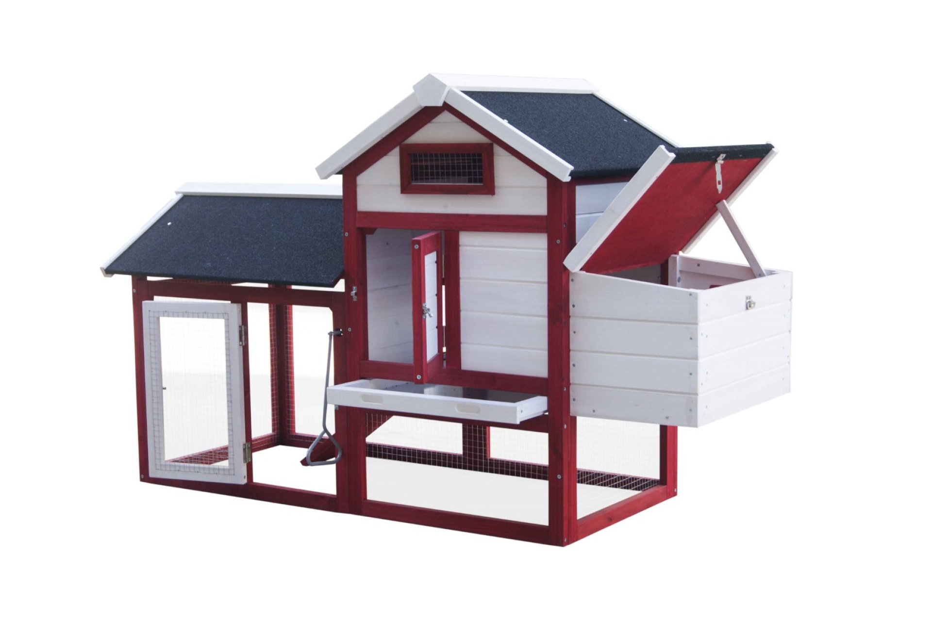 - Toit 2 pentes pour faciliter l'écoulement de l'eau et assurant une plus grande longévité du poulailler